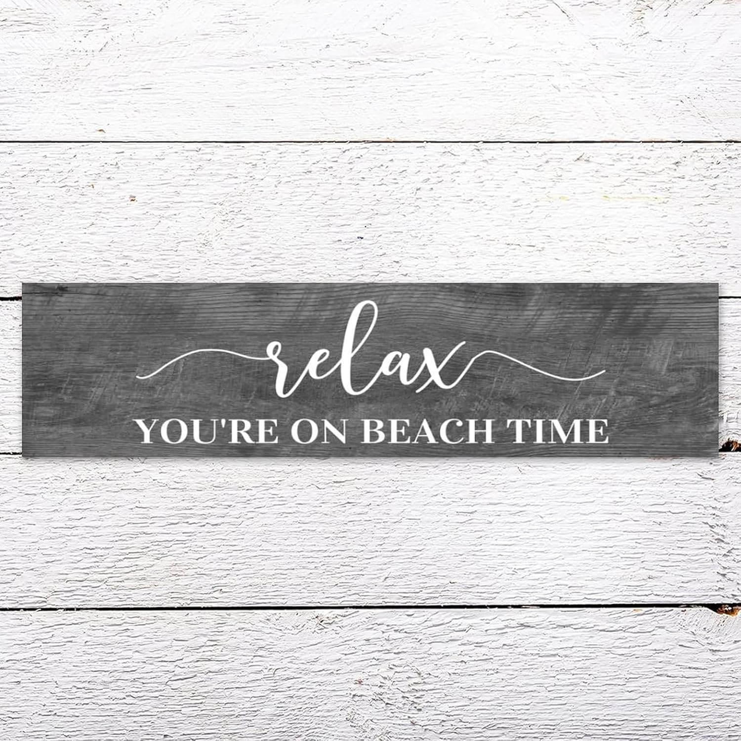 Generic Funny Wood Sign Relax You're On Beach Time Rustic Wooden Hanging Sign Home Farmhouse Kitchen Wall Decoration 16 x 6 Inch