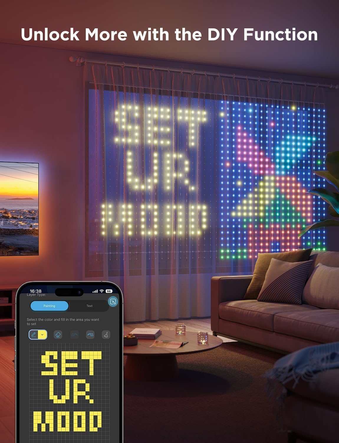 Govee Curtain Lights 2, 520 LEDs, Smart LED Curtain Light with DIY GIF AIGC, Non-Splicable, RGBIC Color Changing Holiday Lights for Indoor Outdoor Bedroom Window Decor, IP65 Waterproof, 4.9×6.6ft