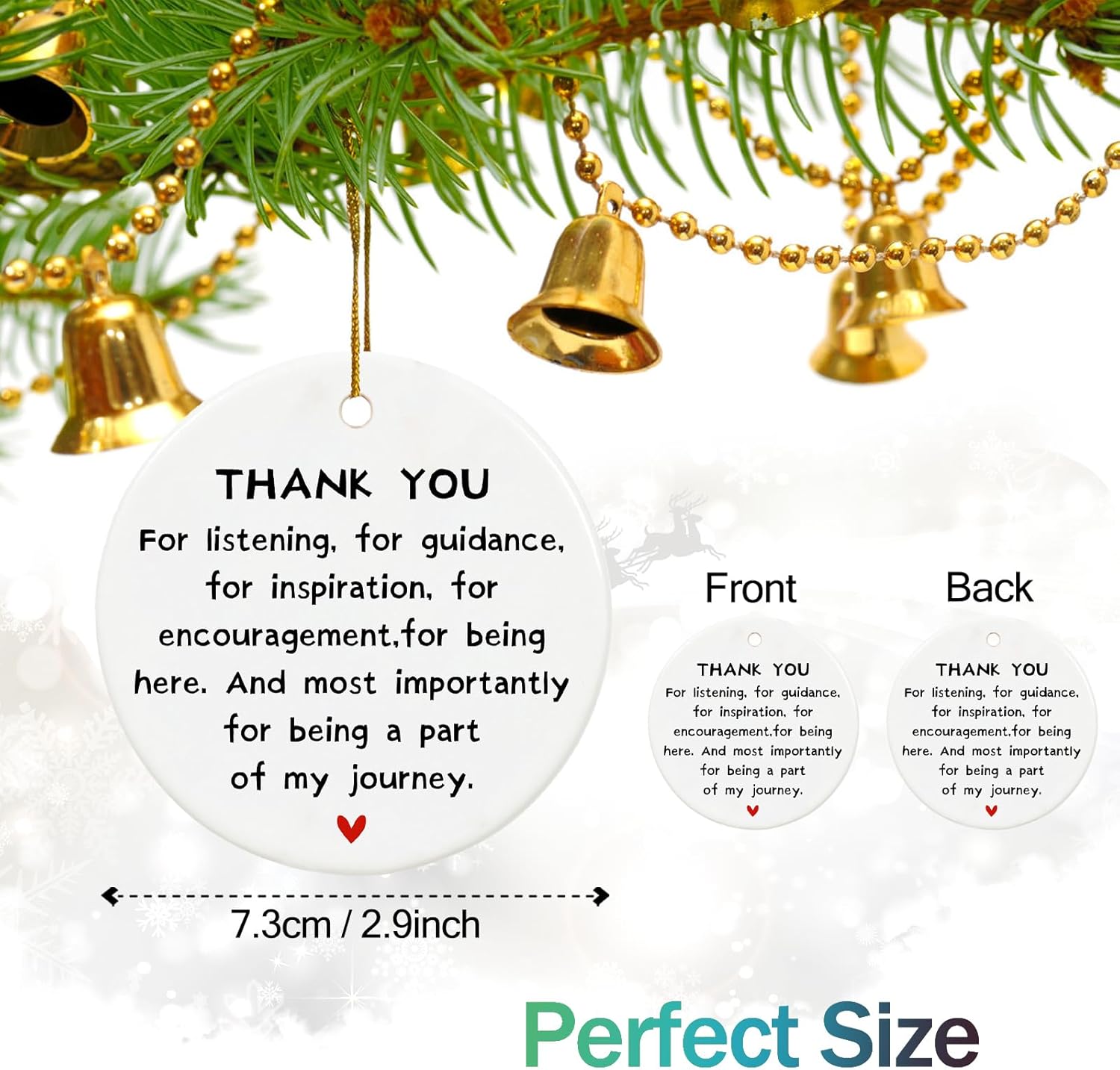 Thank You Christmas Ornament for Teacher Appreciation Gifts, Thank You Nurse Gifts,Goodbye Gift, Ceramic Keepsake Thanks Ornament with Ribbon and Gift Box