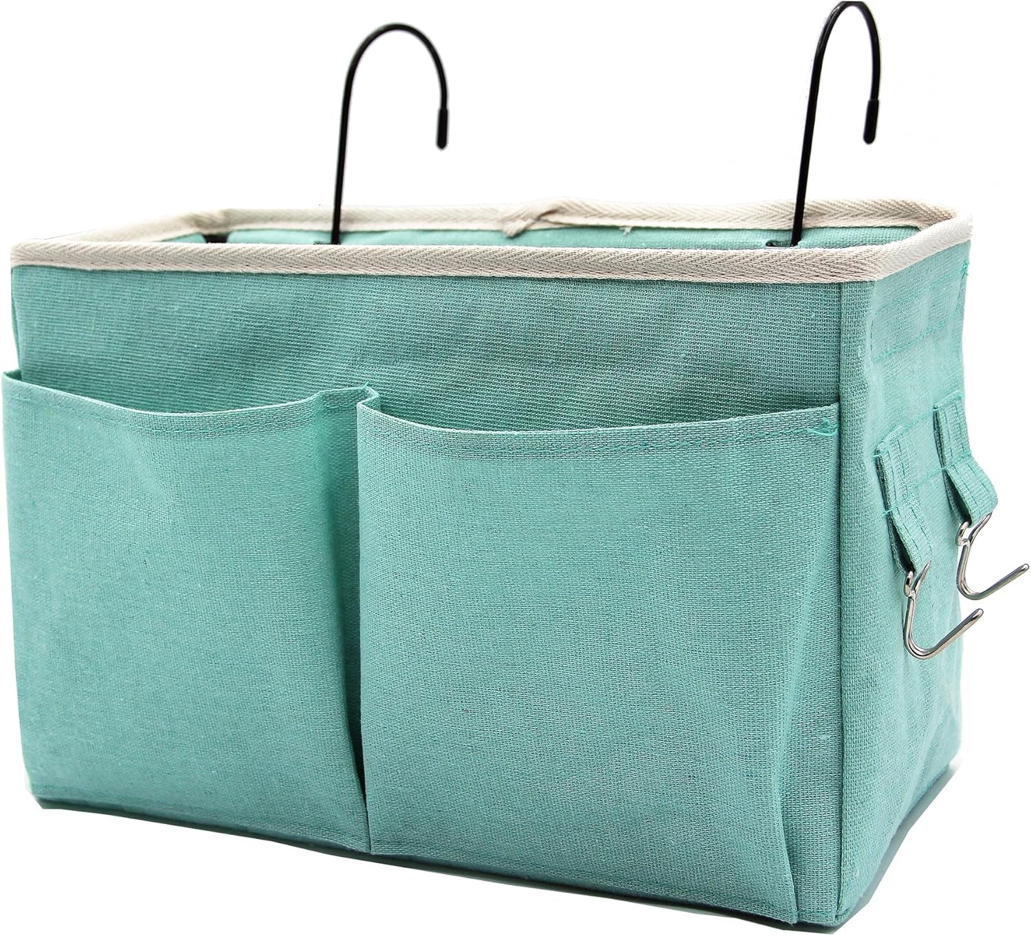 - ă Premium Material ăThe bedside caddy is made of Canvas and iron. make it strong and sturdy.The bedside storage caddy has 1 large pocket, 2 small pockets,1 small mesh pockets,and 2 hook up. You can storage your everything you want on bed, everything is well organized and within reach.