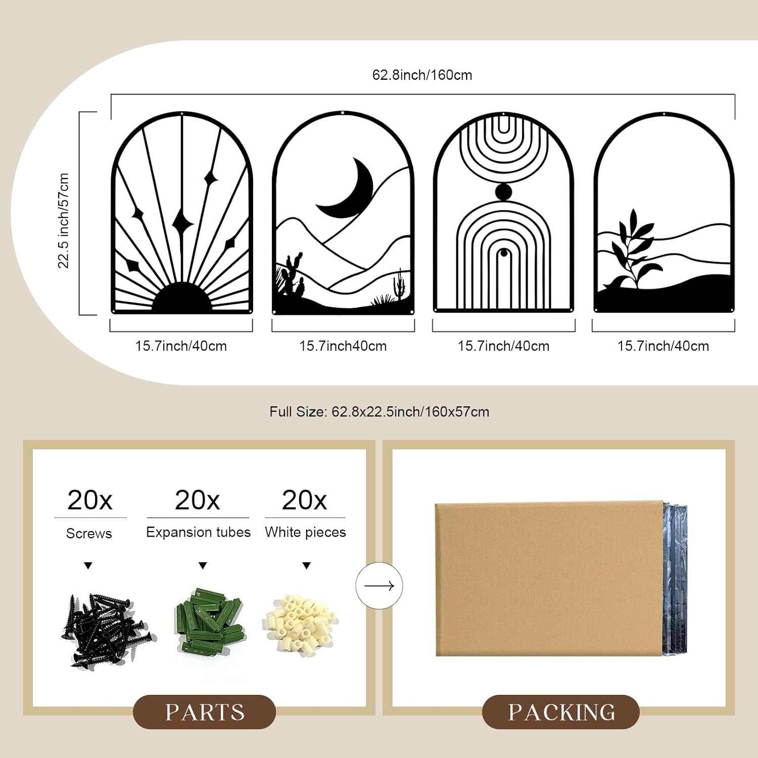 Glamativity 4 Pack Black Abstract Metal Wall Art, Minimalist Décor Single Line Art Wall Décor, 3D Textured Metal Wall Sculptures, for Living Room Bedroom Bathroom Study Room (Black Boho, L Size 22.5 x 15.7'')