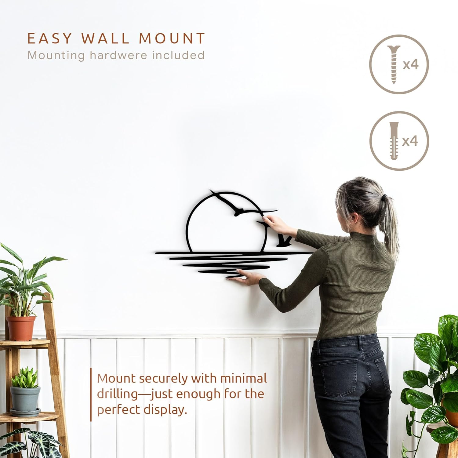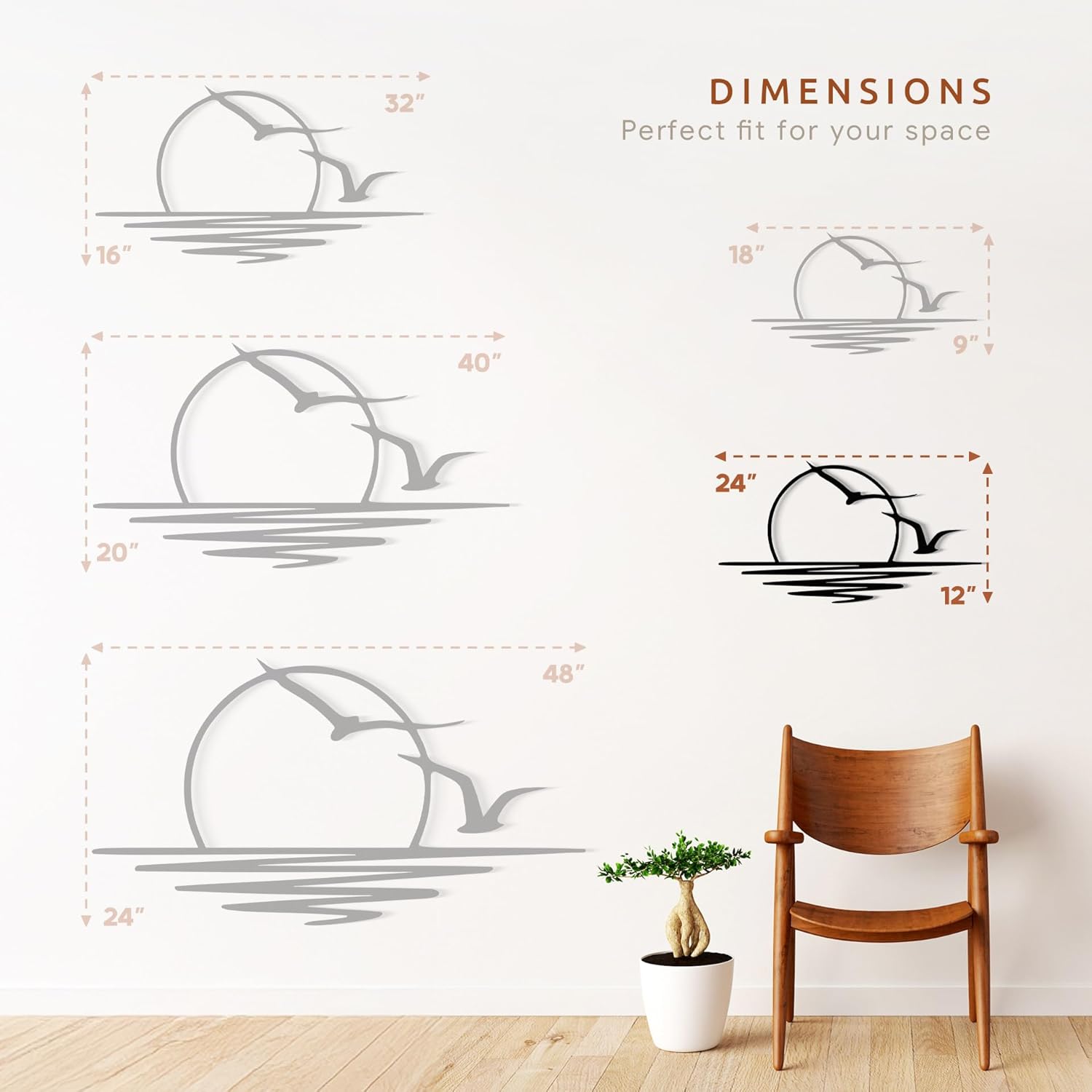 Wita Home Sunset with Seagulls Metal Wall Mounted Art, Handcrafted Metal Home Decor with Static Powder Coating, Eye-Catching Addition to Living Room Decor, Modern Beach Decor for Indoor and Outdoor Spaces, Perfect Housewarming Gift (24 x 12 inches)
