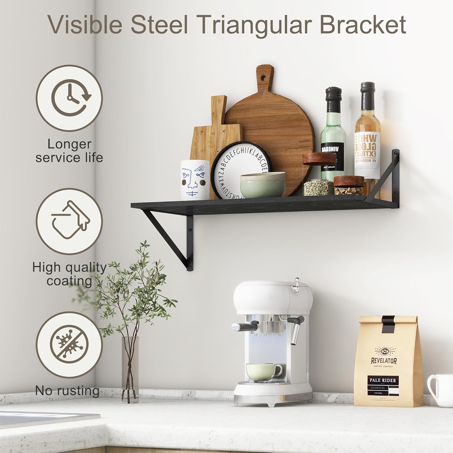 - ăFARMHOUSE RUSTIC WALL SHELFăThese floating shelves are made of premium engineered wood board and visible triangular bracket. The rustic wooden grain surface add character and warmth to any modern or traditional interior with these deep floating shelves, contrast shelves at staggering heights on the wall or mount side-by-side or in the corner for a clean streamlined look.