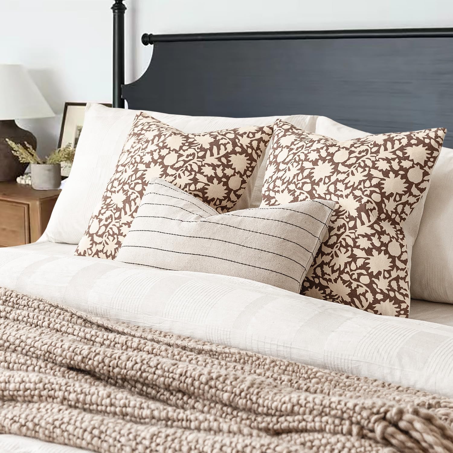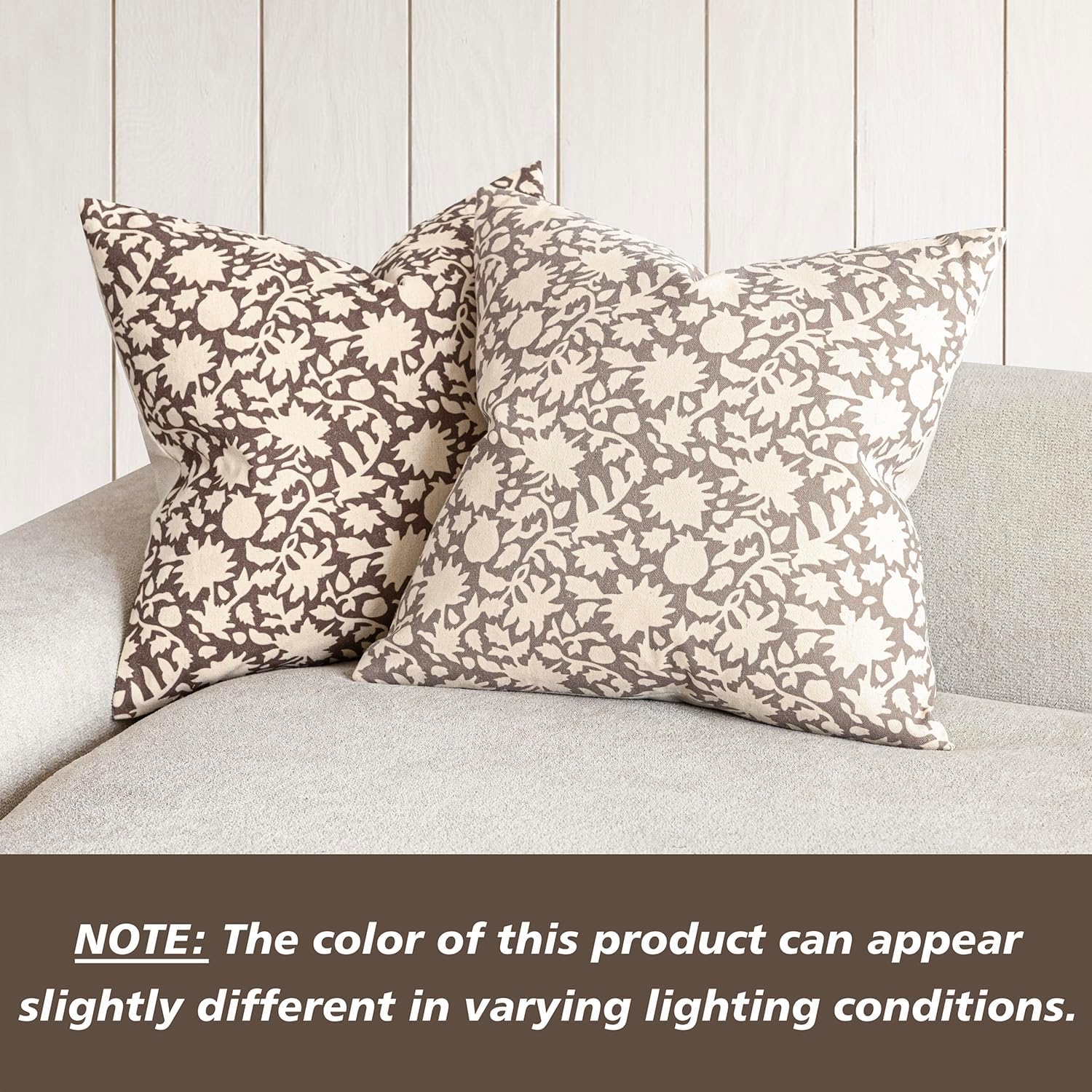 Foindtower Set of 2 Decorative Neutral Floral Throw Pillow Covers Accent Farmhouse Cushion Covers Boho Vintage Pillowcase for Couch Sofa Bedroom Living Room Home Decor Outdoor,18×18 Inch,Brown