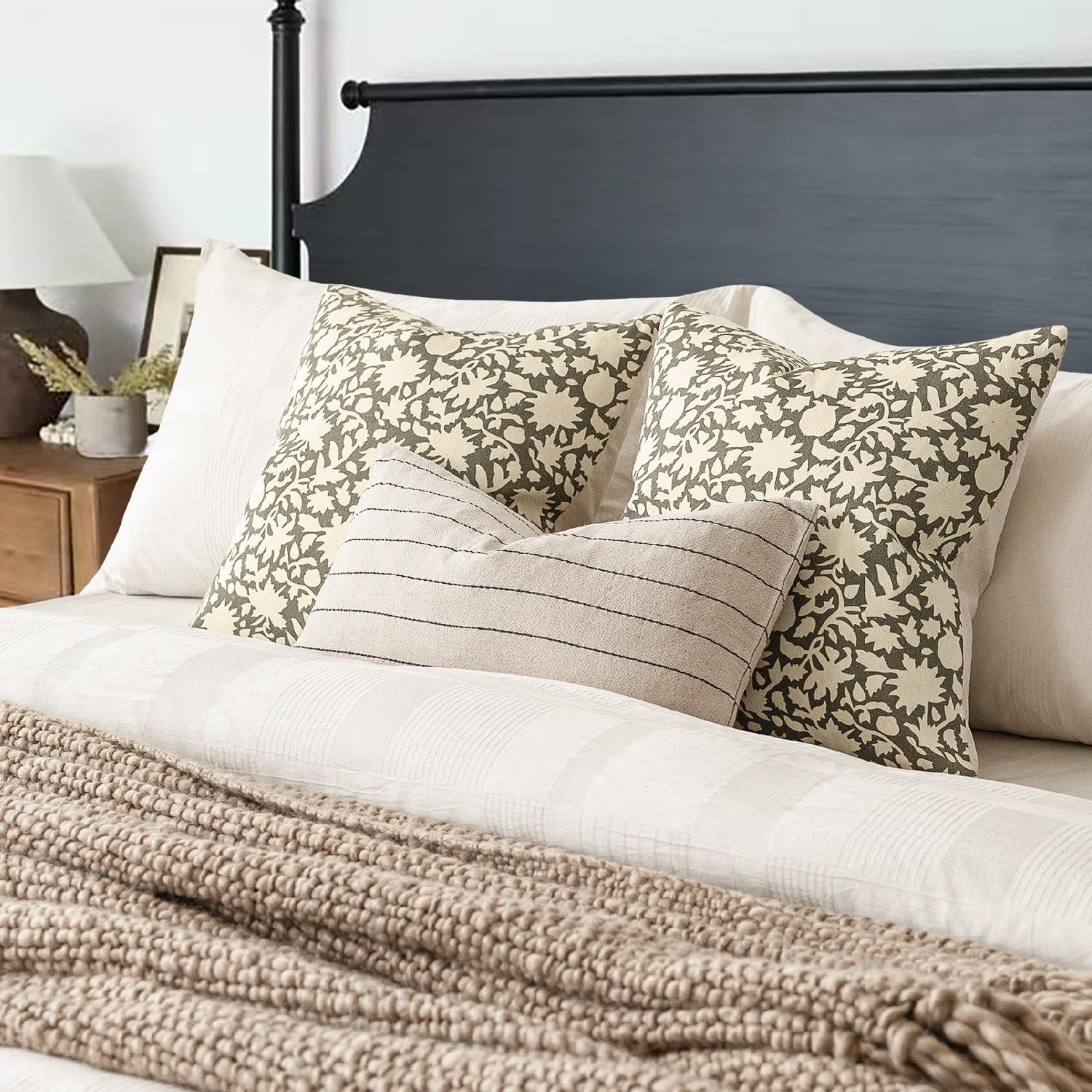 Foindtower Set of 2 Decorative Neutral Floral Throw Pillow Covers Accent Farmhouse Cushion Covers Boho Vintage Pillowcase for Couch Sofa Bedroom Living Room Home Decor Outdoor,22×22 Inch,Sage Green