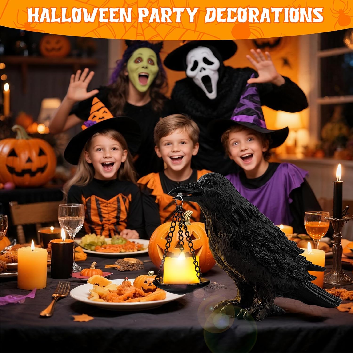 - Gothic Halloween Decor: Enhance your Halloween ambiance with the eerie Crow Lamp, featuring a crow holding a black plate that can hold tealights or fake candles. This unique piece adds a touch of mystery and sophistication to your Halloween decor.