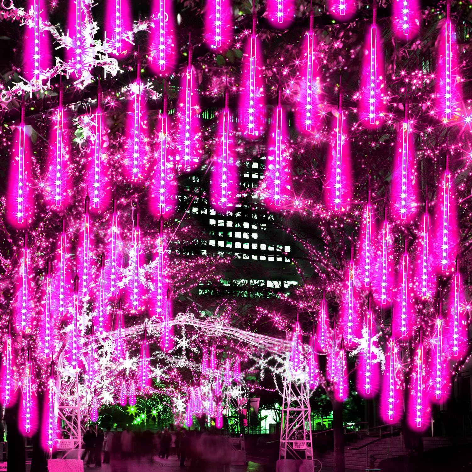 【2 Pack】 Christmas Lights Meteor Shower Rain Lights 12inch, Totally 20 Tube 480 LEDs Icicle Lights Outdoor Raindrop Lights for Xmas Halloween Wedding Party Tree Holiday Decoration, Pink