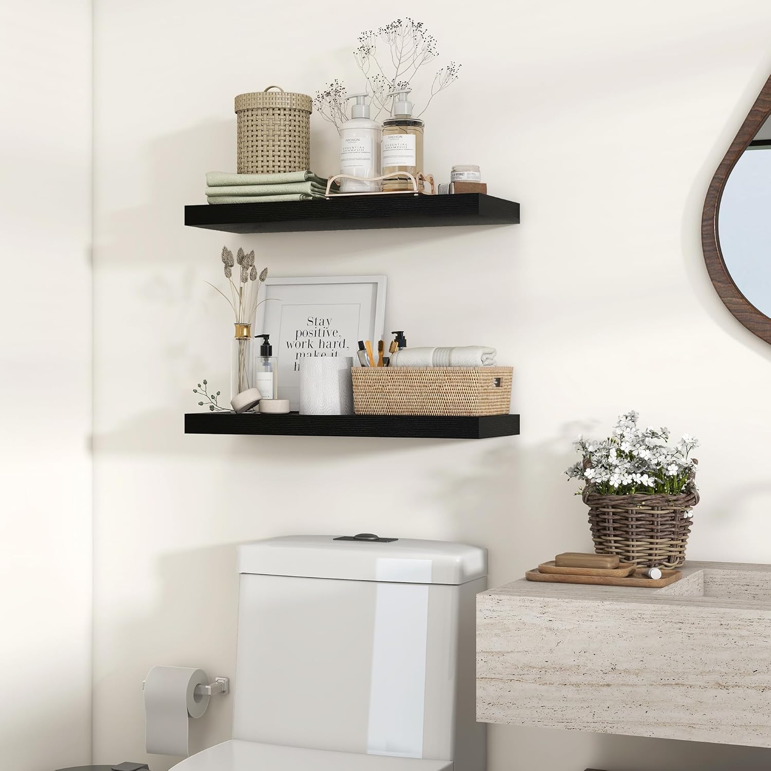 - ăVersatileăOur floating shelves are available in multiple different colors, so our invisible wall-mounted floating shelves are suitable for a variety of home environments, including bathrooms, living rooms, bedrooms, study rooms, and kitchens. It can be used as a storage space for small items and decorations in the bedroom, adding a touch of simplicity and warmth to the space.