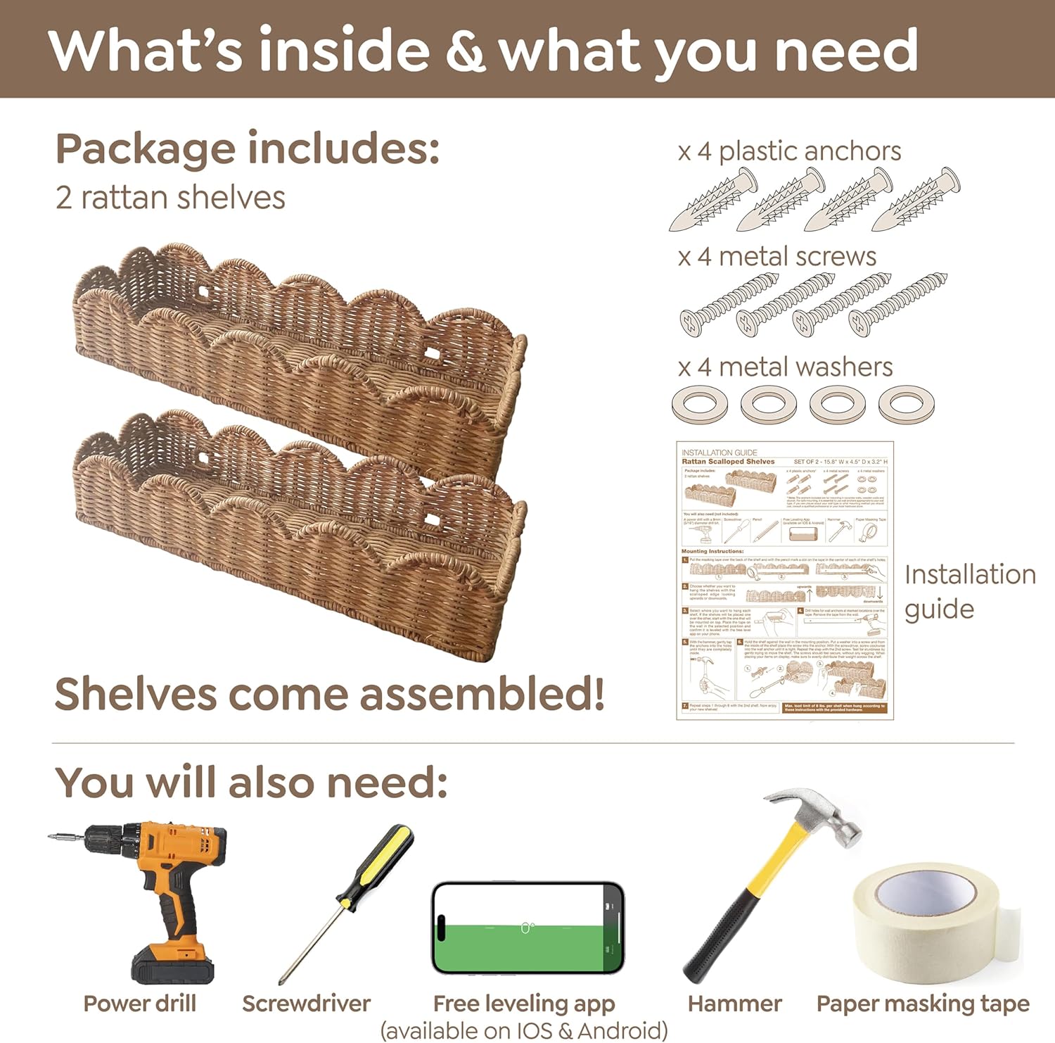 - No Assembly Required: Our wall bookshelf for kids comes ready to install. It includes mounting hardware and easy instructions. Perfect for busy parents, this wicker shelf saves time
