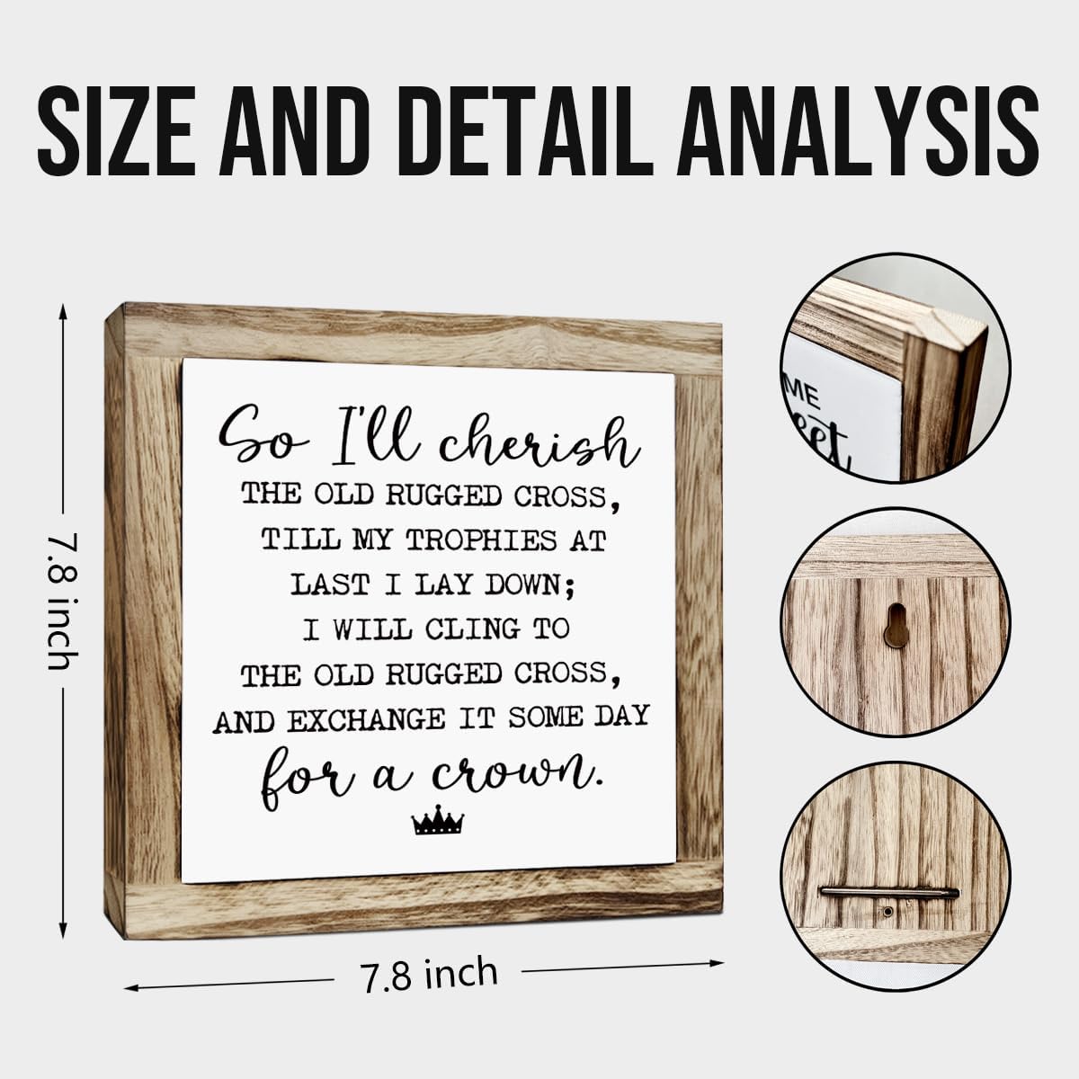 Rustic Wood Sign, So I'll Cherish the Old Rugged Cross Sign, Wooden Plaques Signs Table Decor, Small Wooden Box Signs, Inspirational Desk Decorate, Spiritual Decorate, Shelf Decoration for Home Office
