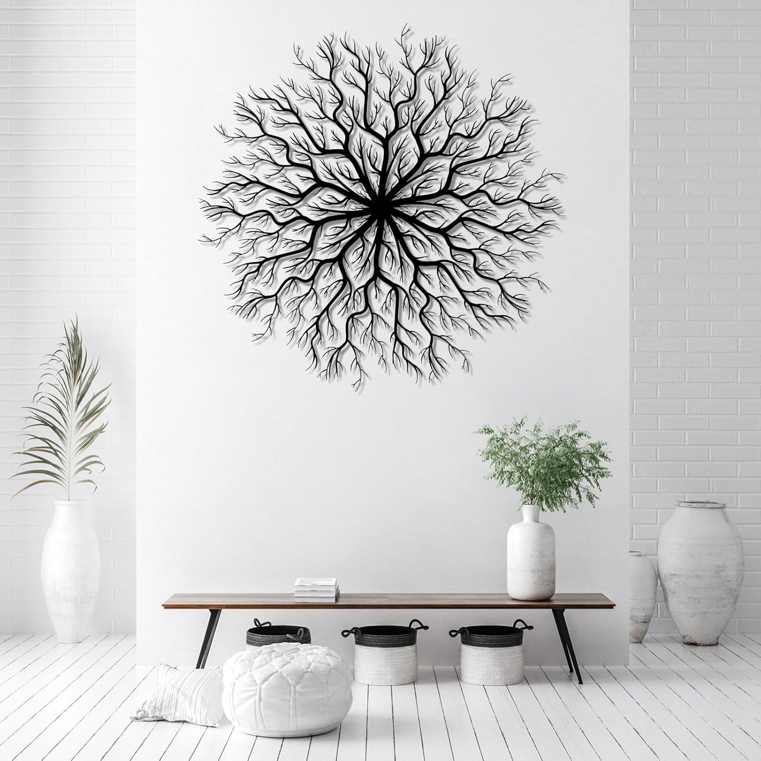 Tree of Life Metal Wall Art, Metal Tree Wall Art, Large Round Sculpture, Round Branch Wall Decor, Large Branch Artwork, Nature Sign, Wall Decor for Living Room, Housewarming Gift (White, 19"x19"|47x47cm)