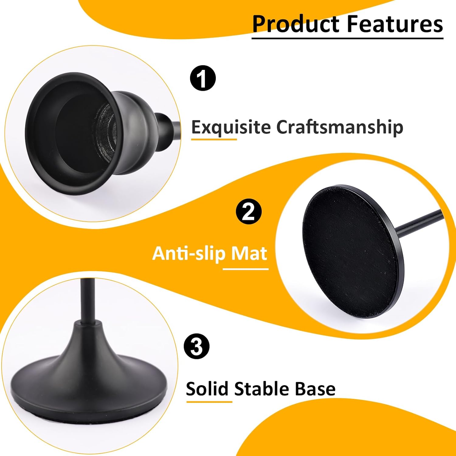 Metal Candle Holders for Candlesticks Taper Candlestick Holders Set Vintage Decorative Centerpiece Candelabra Tall Candle Stands for Halloween Thanksgiving Christmas (Matt Black, 4 Sets (12 pcs))