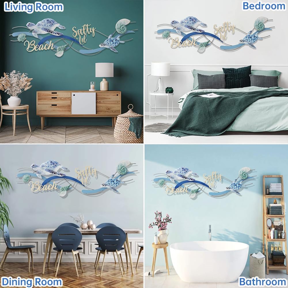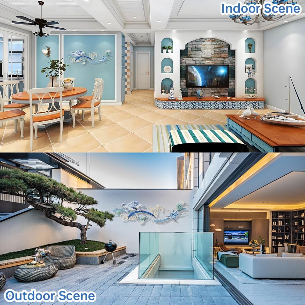- [Rust-Proof Paint Sprayed Iron Art] Outdoor metal wall art is made of iron forging, hand-painted, rust-proof and gold foil technology, making the blue metal wall decor light and luxurious, scratch-resistant and easy to clean. The surface of the farmhouse metal wall decor is treated with high-temperature baking paint, and large metal art wall decor is resistant to high temperatures. The colored paint surface is exquisite and firm, smooth and will not fall off. Metal wall art for living room is a unique artswork for collection.