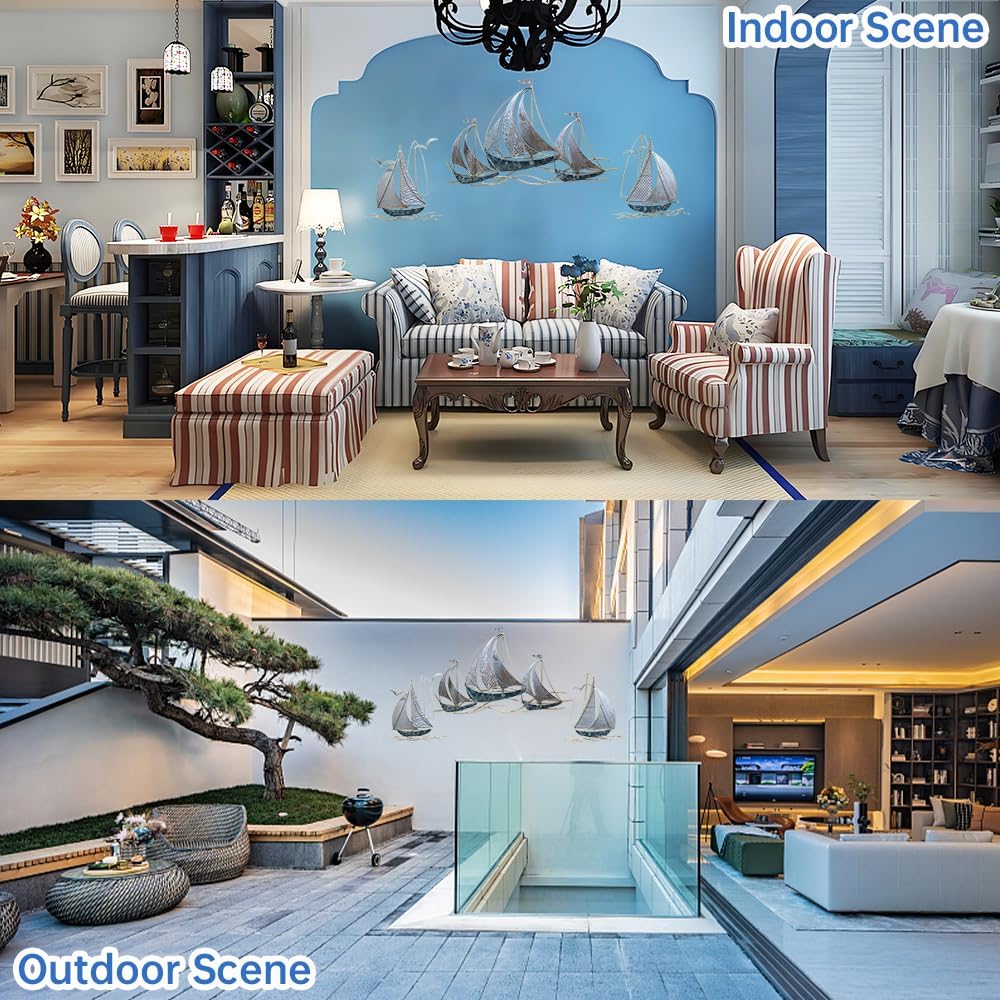 - [Rust-Proof Paint Sprayed Iron Art] Outdoor metal wall art is made of iron forging, hand-painted, rust-proof and gold foil technology, making the blue metal wall decor light and luxurious, scratch-resistant and easy to clean. The surface of the farmhouse metal wall decor is treated with high-temperature baking paint, and large metal art wall decor is resistant to high temperatures. The colored paint surface is exquisite and firm, smooth and will not fall off. Metal wall art for living room is a unique artswork for collection.