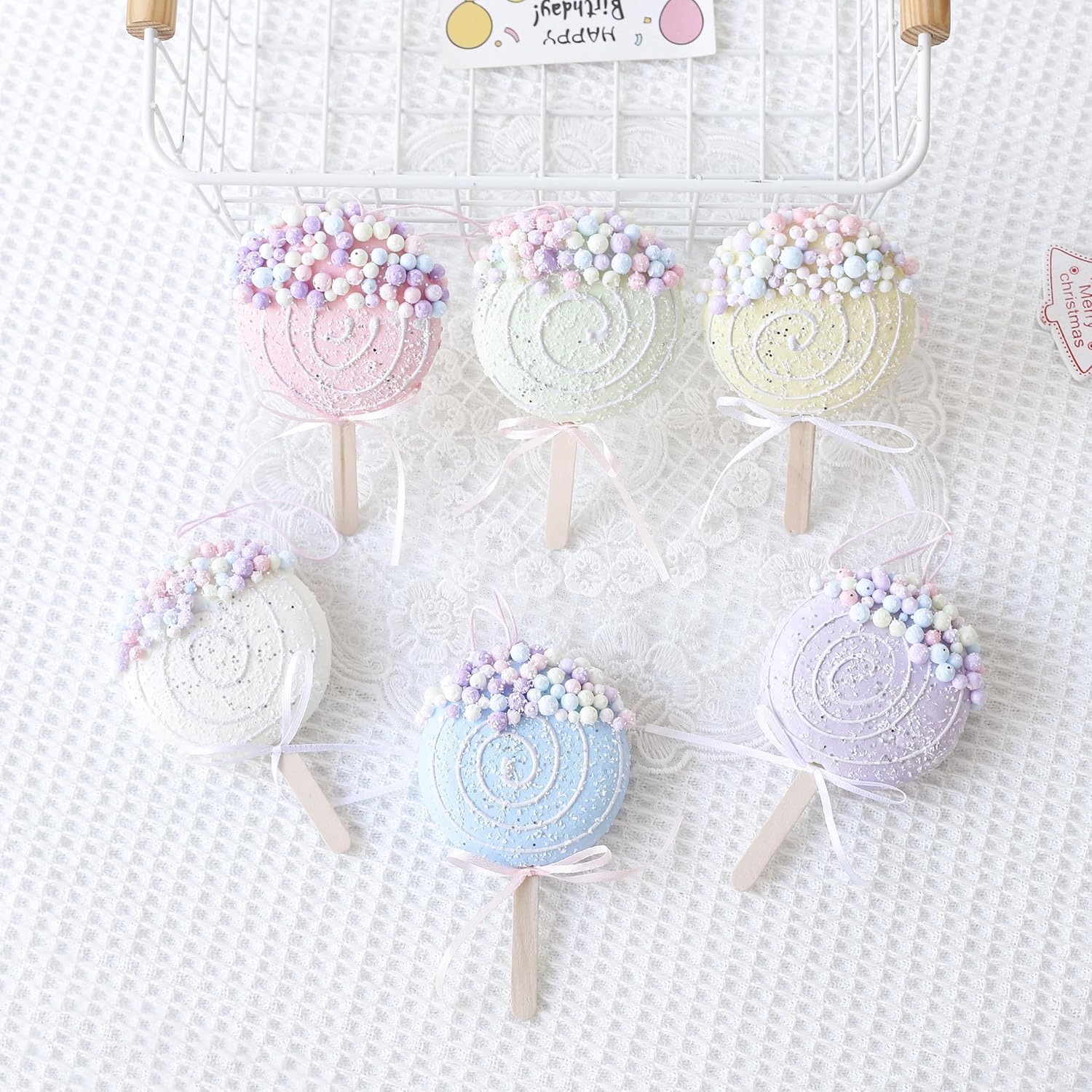 Lollipop Party Decorations Ornaments,6pcs Hanging Christmas Tree Lollipop Ornaments, Macaron Color Mini Dessert Lollipop Pendant Set for Xmas New Year Birthday Home Party Supplies (Lollipop)