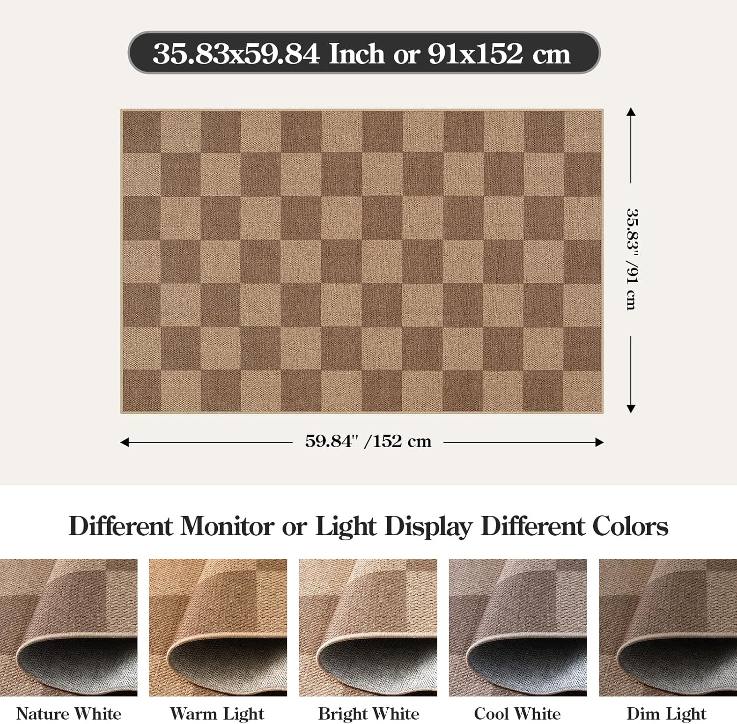 Lahome Checkered Easy Jute Entryway Rug, Washable Rugs 3x5 for Living Room Farmhouse Carpet, Non Slip Indoor Outdoor Door Mat Checkerboard Throw Carpet for Entry Patio Guestroom Deck
