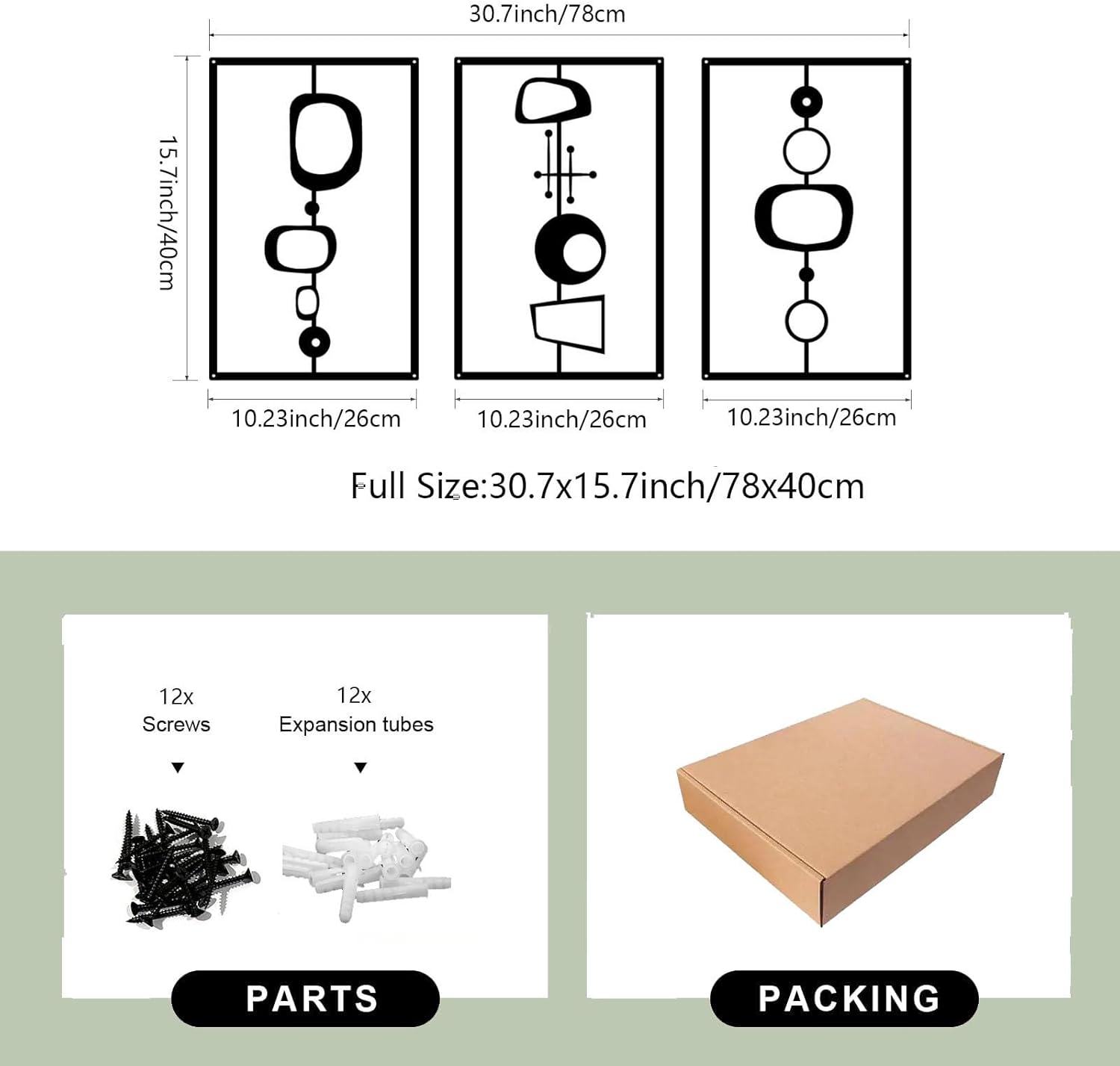 - [Unique Design] Metal Abstract Wall Art creates a 3D effect, The set comes with 12 screws, 12 expansion tubes for stable and smooth installation, seamlessly blending with your home decor.