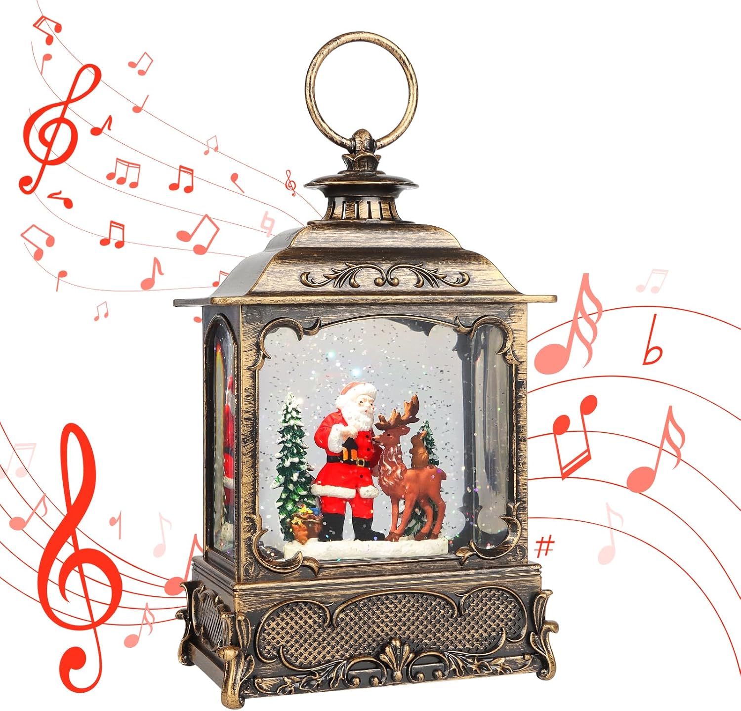Christmas Snow Globes,Christmas Decorations for Home,with 6 Hour Timer,Musical Snow Globe,Battery Or USB Powered,Christmas Lantern,Christmas Festival Decor, Santas Reindeer