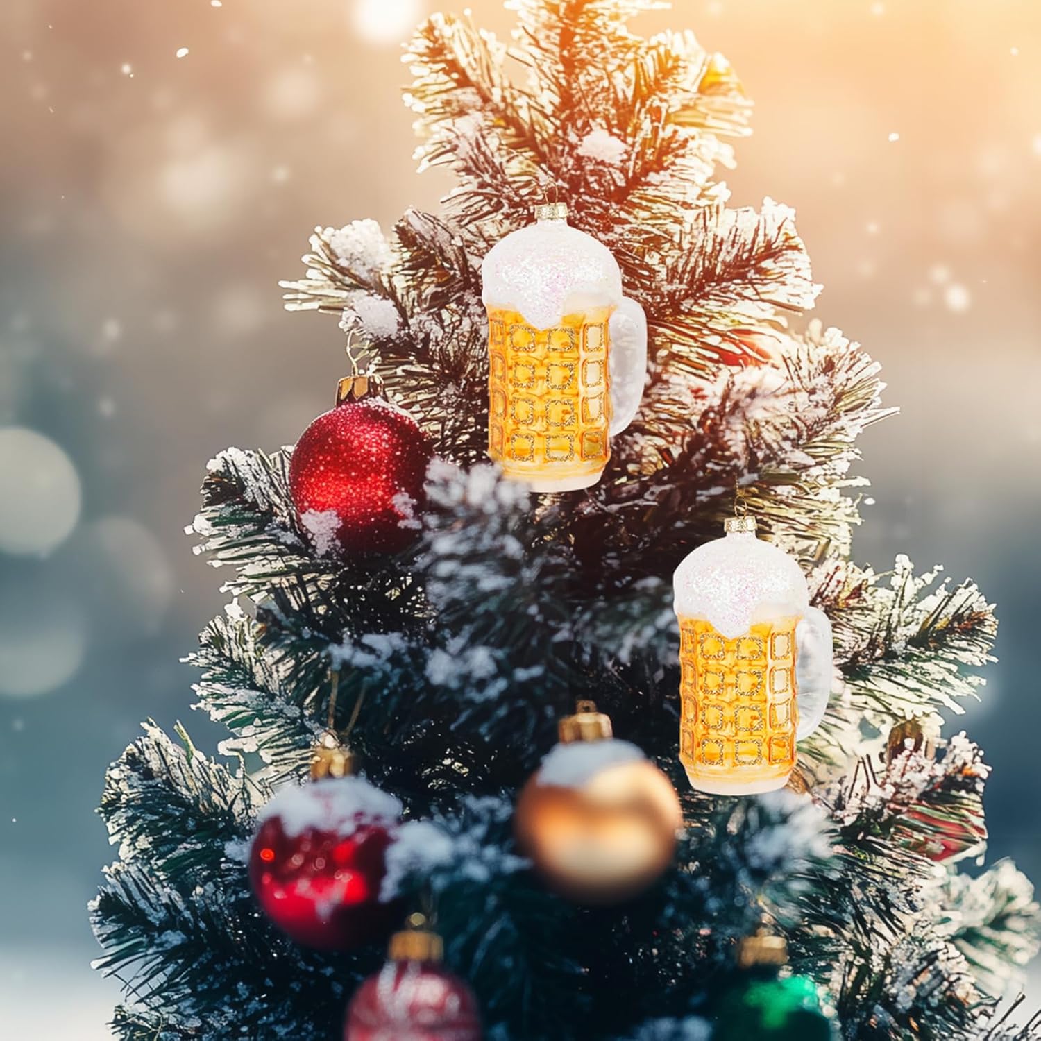 Christmas Ornaments, 2024 Glass Blown Christmas Tree Ornaments, Blue Christmas Tree Decorations, Funny Gifts & Home Decor- Mini Mug of Beer