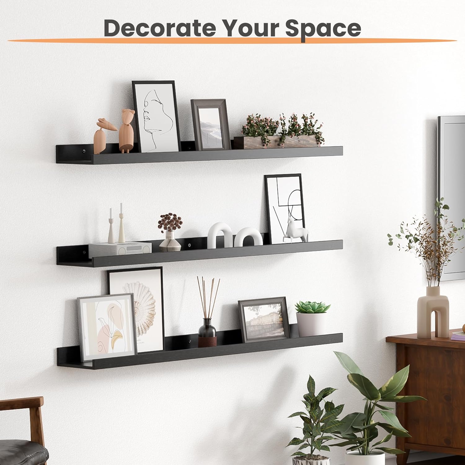 upsimples Floating Shelves for Wall, Wall Shelves for Decor Storage Set of 6, Wall Mounted Wood Shelf for Bedroom, Living Room, Bathroom, Kitchen, 35.5 inch Long Picture Ledge Shelf, Black