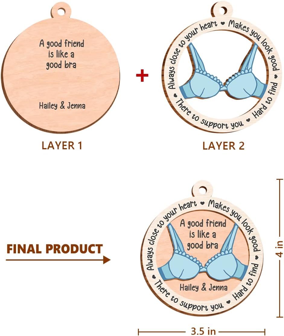 Personalized Best Friends Christmas Tree Ornament - 2 Layered Wooden Design, Custom Keepsake for Friends