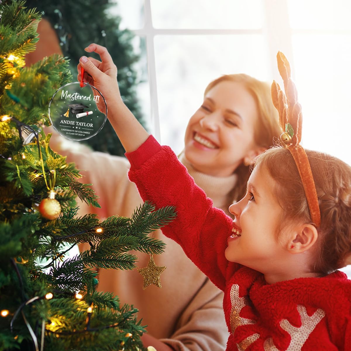 Personalized Mastered It Degree Graduation Gifts - Custom Christmas Crystal Glass Ornament, University, College, Senior Year Keepsake