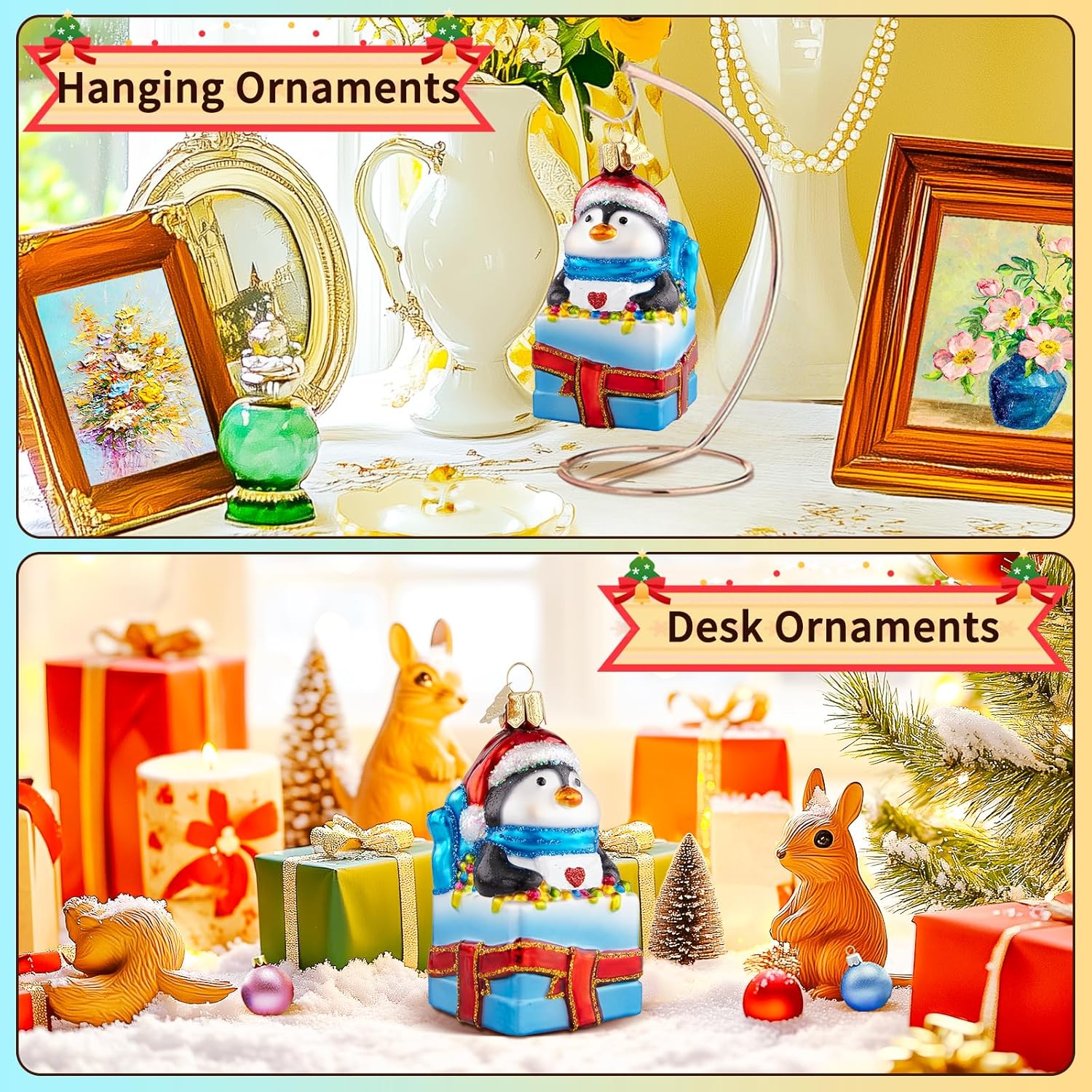 Penguin Christmas Tree Ornaments,Hand-Blown Glass Ornaments,Personalized Penguin Collection Hanging Ornaments,Christmas Decorations for Animal Lovers Holiday Birthday Party Home Gifts