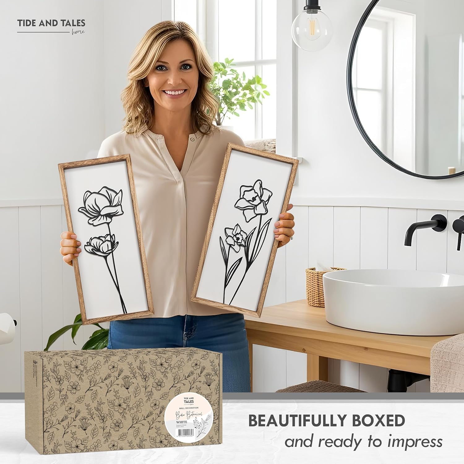 - Unique 3D Floral Cutout Design – This elegant 2 piece set features raised wooden floral cutouts that add texture and depth, setting your new decor apart from the usual prints and pictures. Designed with black and white colors that are easy to style.