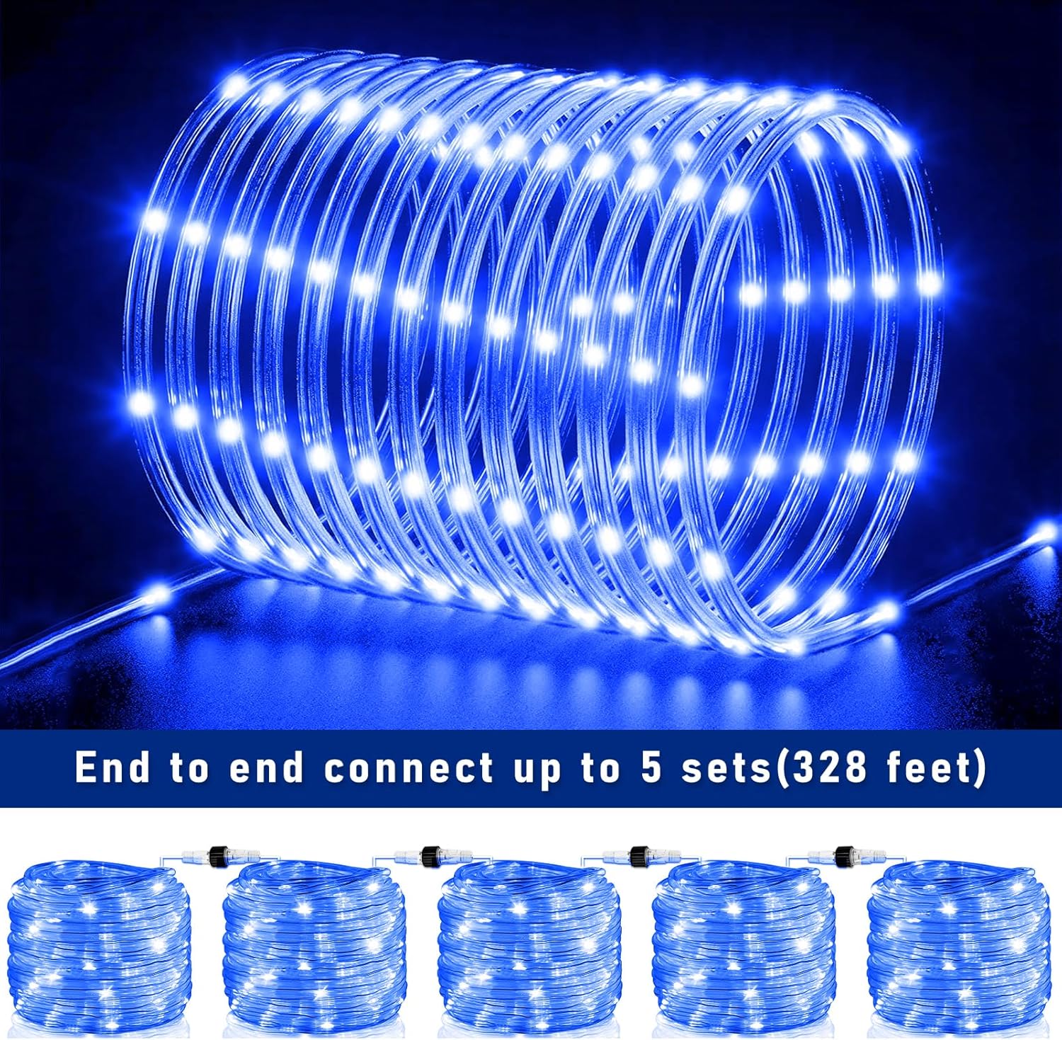 Rope Lights Outdoor, 66FT 200 LED Rope Lights for Outside Waterproof with 8 Modes, Plug in Connectable Clear Tube Light for Indoor, Garden, Backyard, Patio, Pool, Tree, Holiday Decorations - Blue