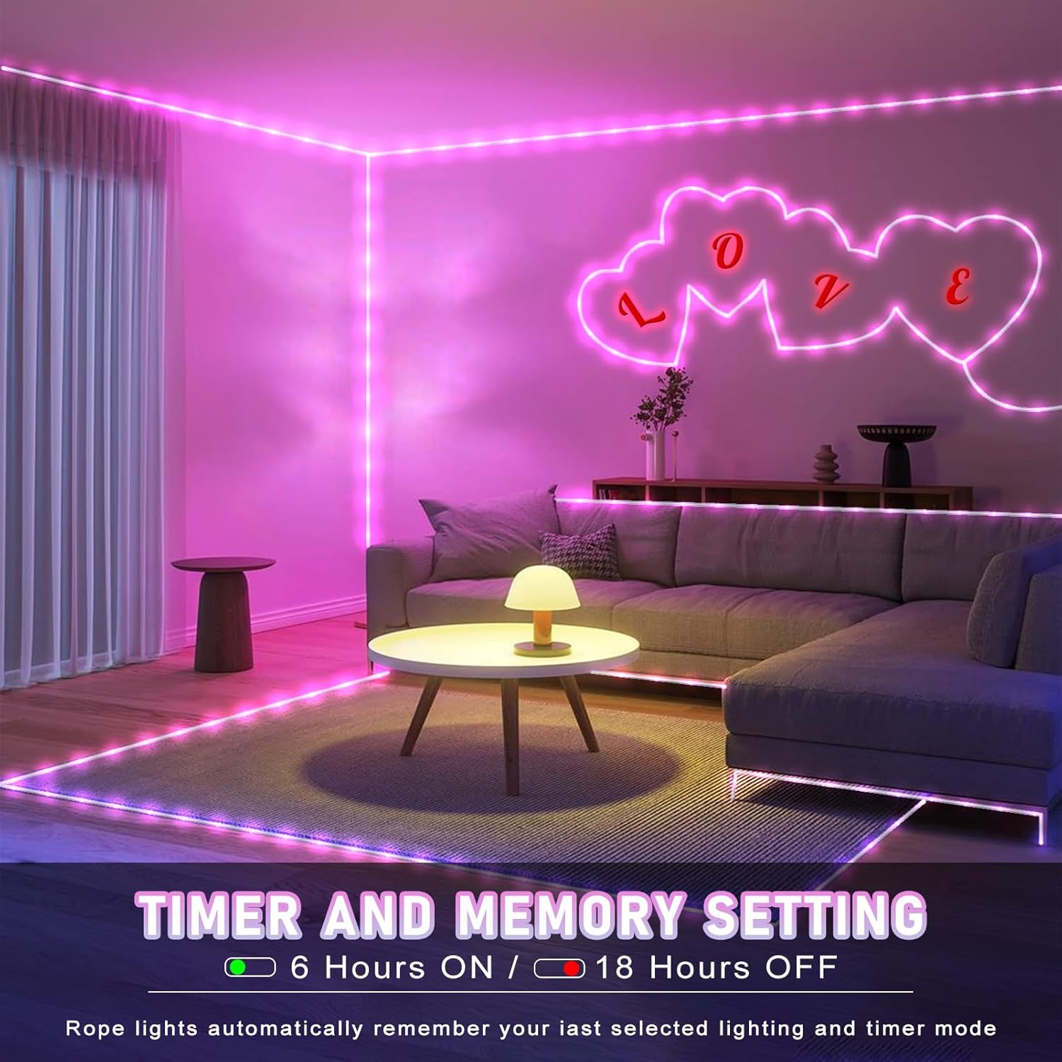 - ăConnectable Rope Lightsă- Our upgraded led rope lights feature has 66ft lighting length, 6.6ft lead wire, total 72.6ft length. And the spacing between each LED bead is 4 inches, the light is bright but not harsh. The rope lights indoor can be connected end to end up to 5 sets to illuminate your home and create a warm and romantic atmosphere!