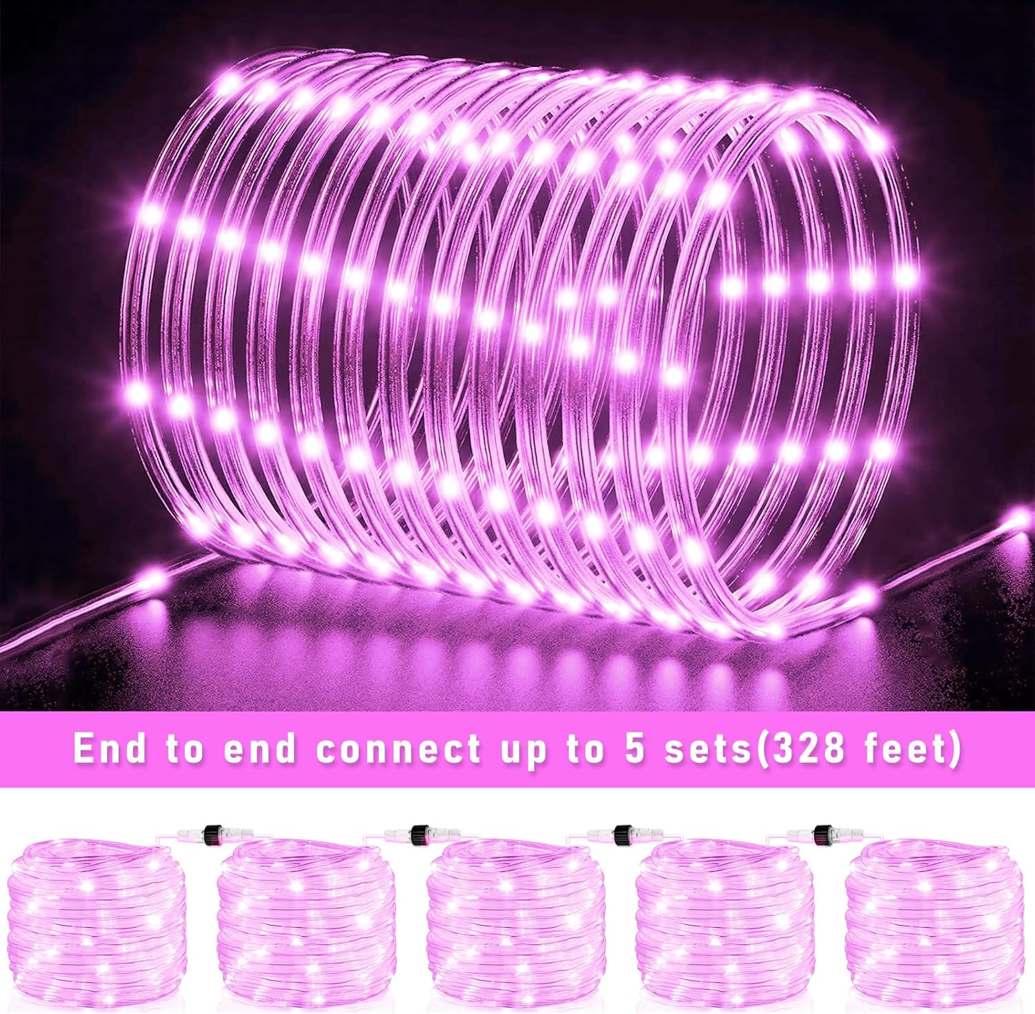 Rope Lights Outdoor, 66FT 200 LED Rope Lights for Outside Waterproof with 8 Modes, Flexible and Connectable Clear Tube Light for Indoor, Garden, Backyard, Patio, Pool, Tree Holiday Decorations - Pink