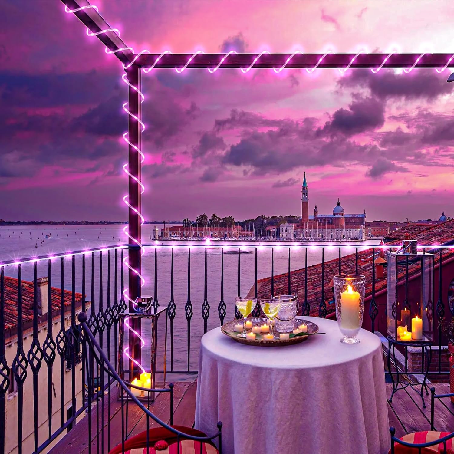 - ăWaterproof Outdoor String Lightsă- IP65 Waterproof design, they are suitable for all weather use, remaining bright and sparkling even during strong rain and windy days. The outdoor rope lights is ideal for year-round outdoor decor and can illuminate gazebos, canopy, corridors, gardens, and patios. But please note the plug is not waterproof.