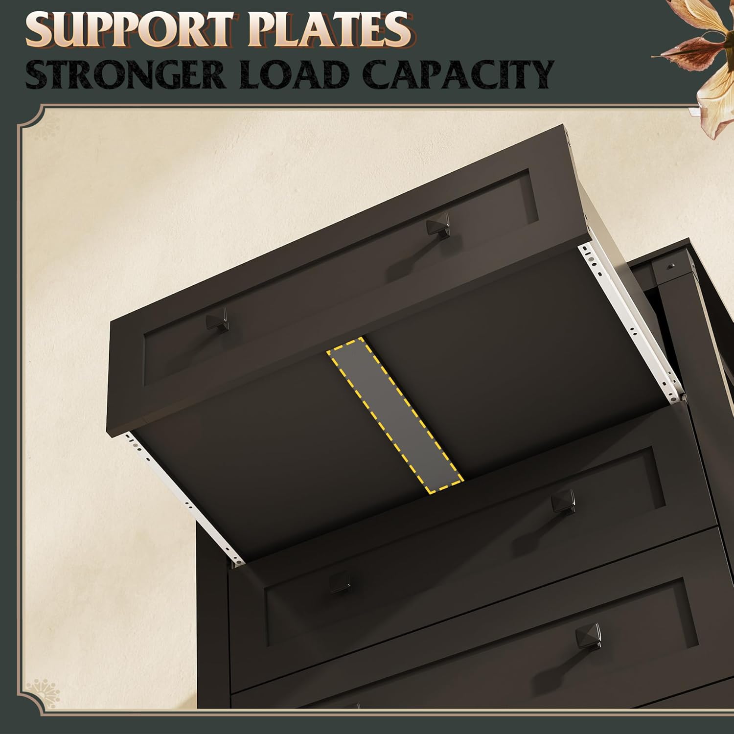- đăStructure Stable and SmoothăThe dresser drawer features a middle support plate for stability and stronger load capacity, smooth metal slides for easy pulling, which allows drawers to open fully without tipping for better storage.