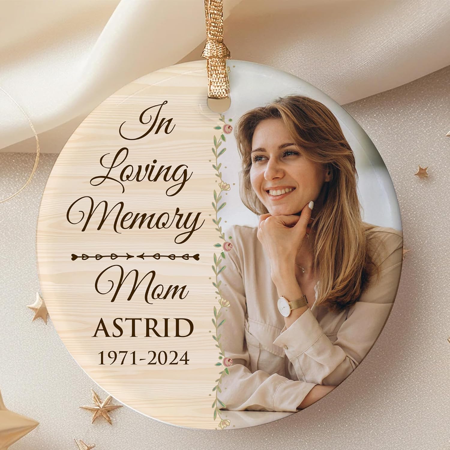 - Meaningful Design: Adorned with the heartfelt message “In Loving Memory” and customizable with your loved one’s name, years, and photo, this round ceramic ornament is a touching tribute that keeps memories alive all year long.