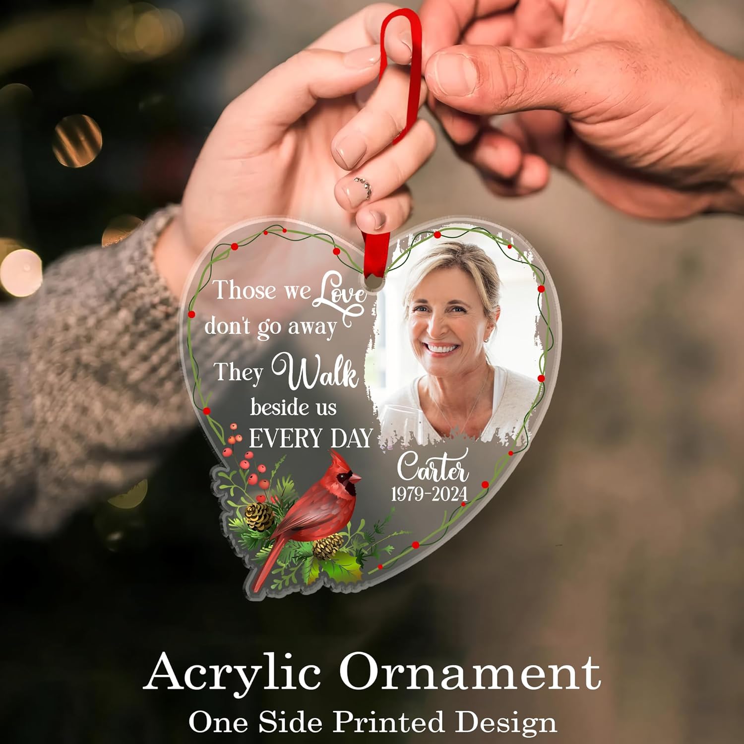 2025 Personalized Memorial Acrylic Ornament – Christmas-Birthday-Anniversary Keepsake for Loss of Loved One – Custom Photo Name Year – in Loving Memory Heart Decoration