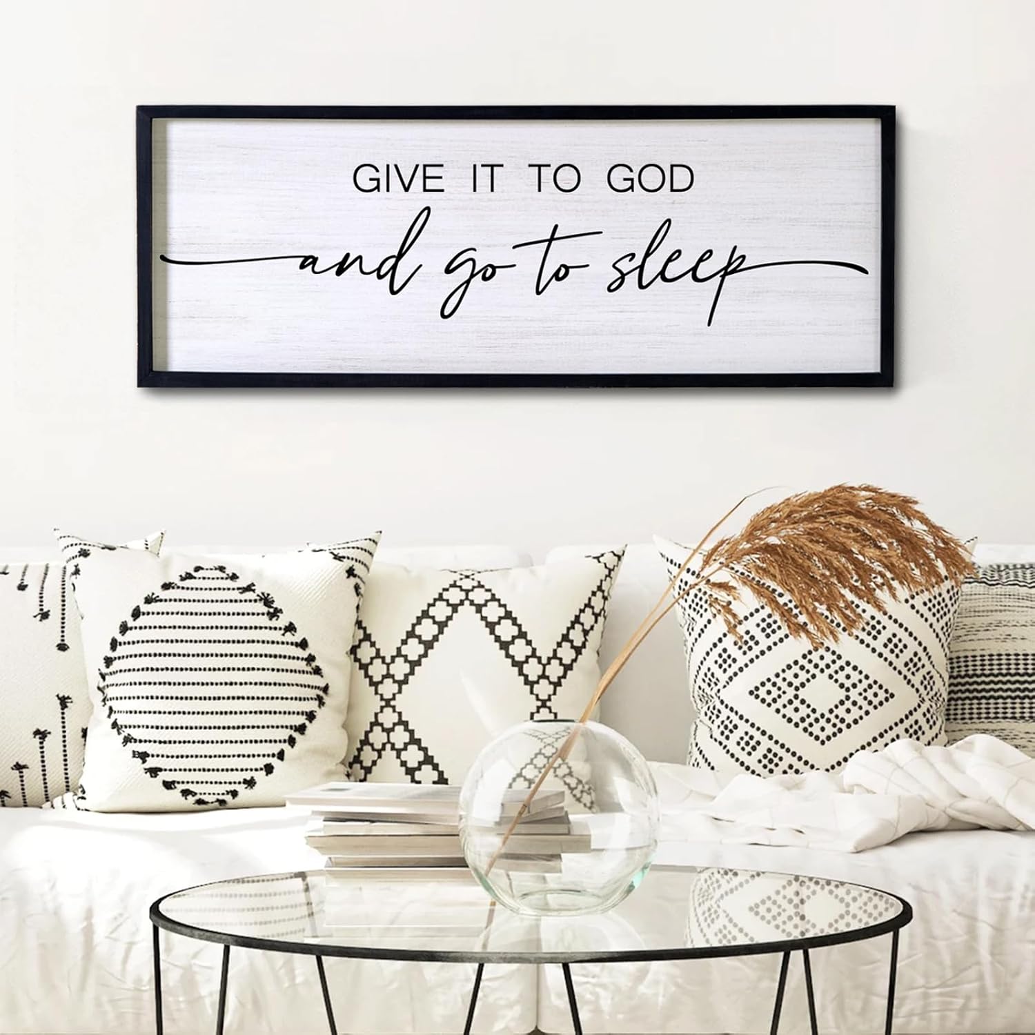 - 【Perfect Blend of House Styles】The large give it to god and go to sleep wall decor can perfectly suitable for all kinds of home styles, which can be perfectly combined with everything from minimalist mid century modern homes to french country coastal farmhouses or seaside lake house to create a unique and time-honored wall charm.