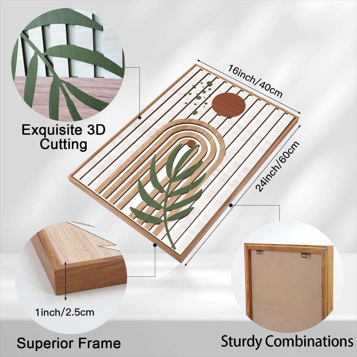 - 【Boho Mid century Wall Art】This mid-century modern abstract painting is the perfect combination of wood art and Boho style, combining sun,greenery and geometry elements for a cutting-edge and aesthetically pleasing visual experience. Hang it on the wall, break the boring empty wall, and add some colorful ideas to your room.