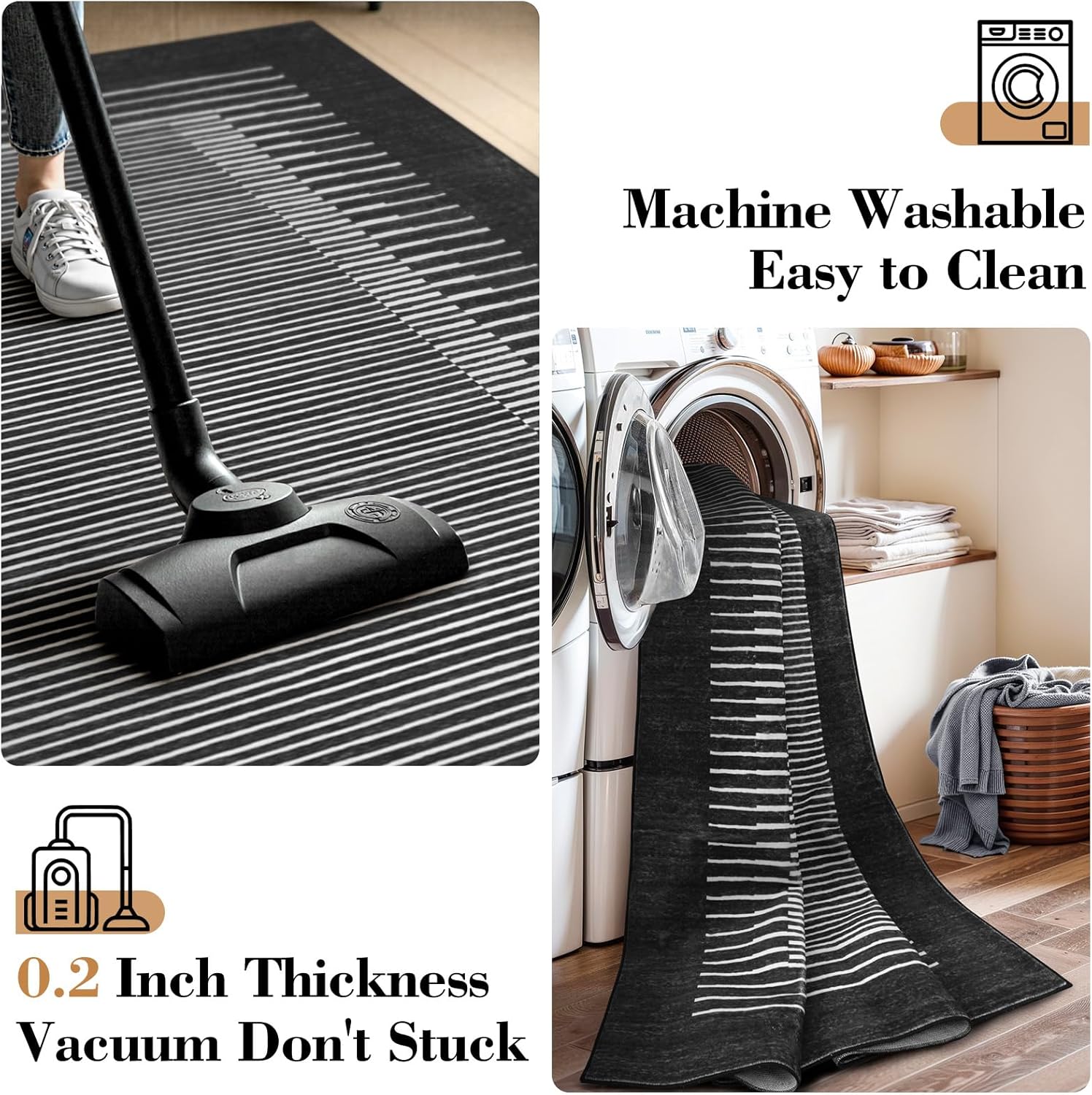 - 【Pet Friendly】: This striped rug can survive those little accidents, pet odors, and regular thorough vacuuming; The low pile machine washable design prevents animal hair from being hidden easily, making cleaning convenient and saving maintenance costs