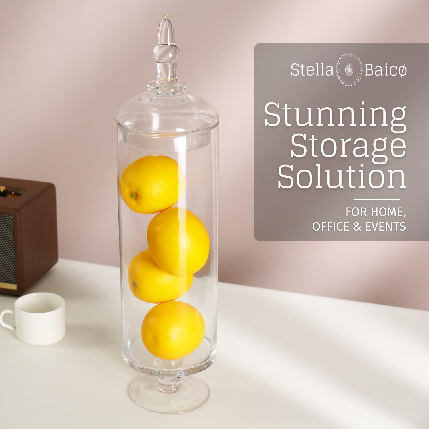 - MULTIPLE USE: Not only for your Home, this large candy jar for candy buffet is very sturdy and fancy, perfect for adding decoration to weddings or parties. The tall candy jars glass bring a touch of luxury and modern design to any event. Stella Baicø glass candy canister can also be a perfect gift for family and friends.