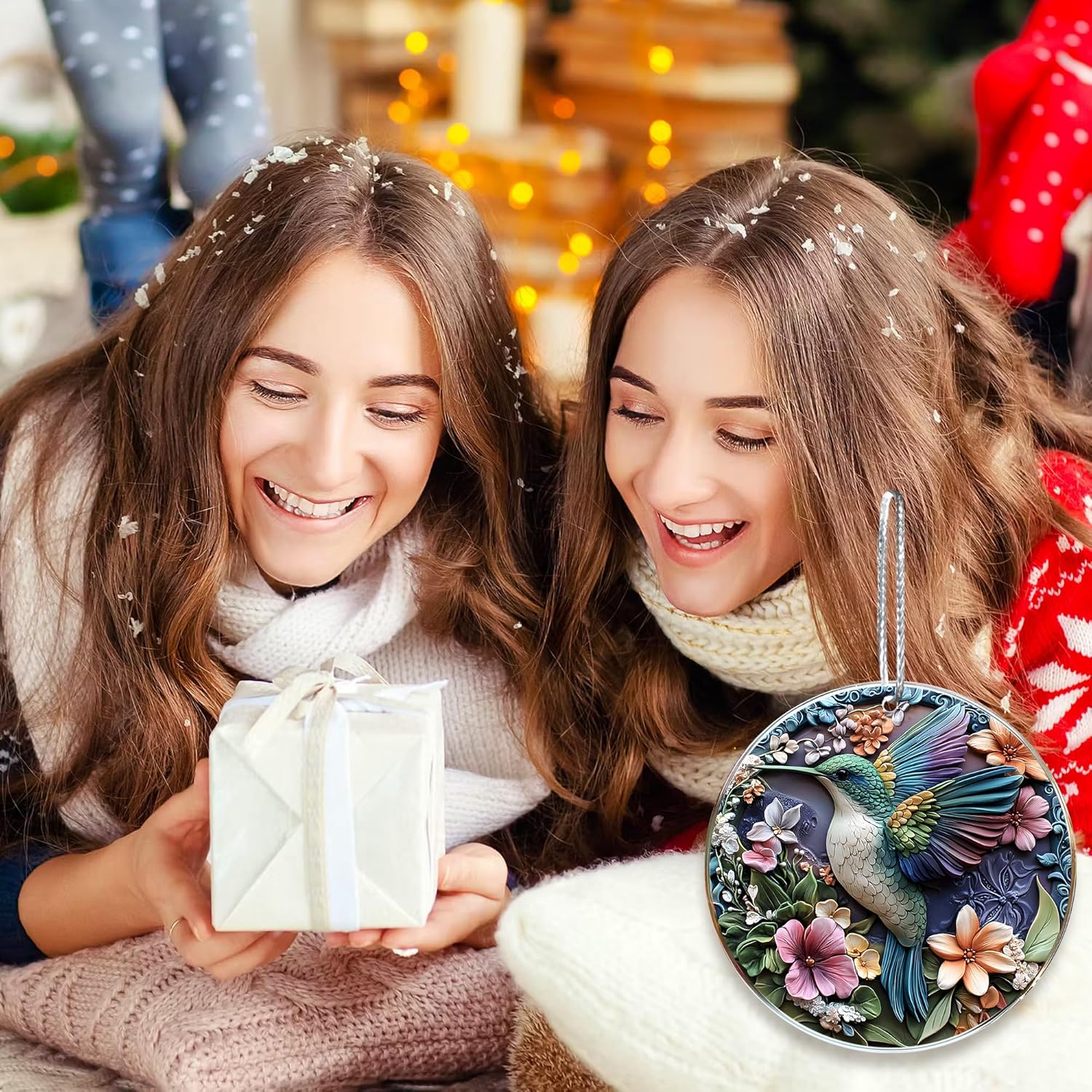 Jabihome Christmas Ornaments 2025, Exchange for Women, Men, Collectible Dated Year Ornaments for Tree, Unique Acrylic Suncatcher, Printed Stained Glass Effect Decor (Hummingbird)