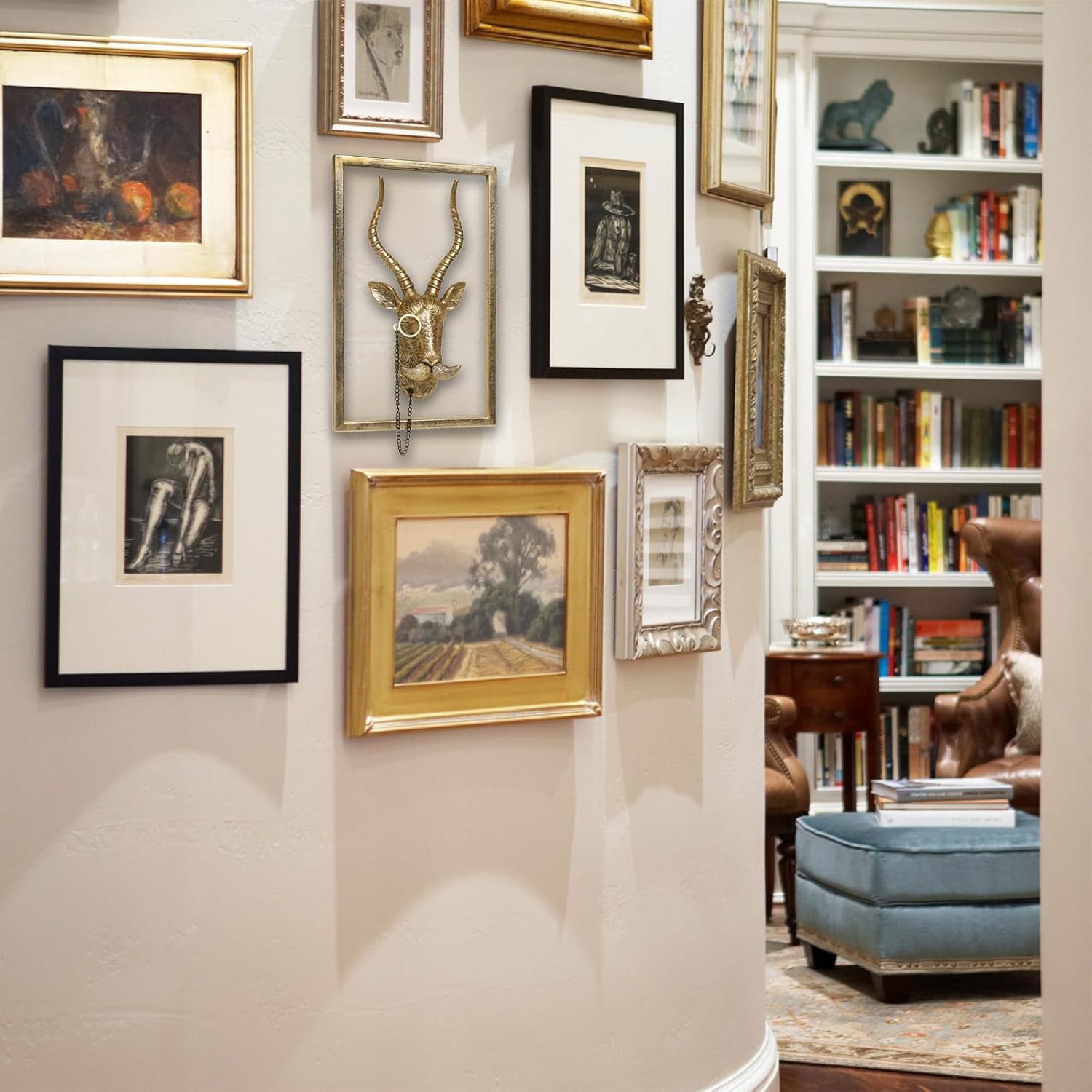 Animal Heads Wall Decor (Includes Metal Frame) Resin Animals Sculptures Head Wall Hanging Decoration Gold vintage Wall Sculpture for Living Room Bedroom Office(Antelope)