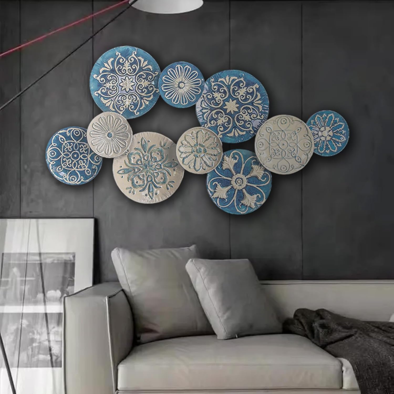 - Large Metal Wall Decor: 3D metal wall art will give you the character of vivid image on your wall. Blue and White colorful wall decoration are stacking together for a classical elegance feel