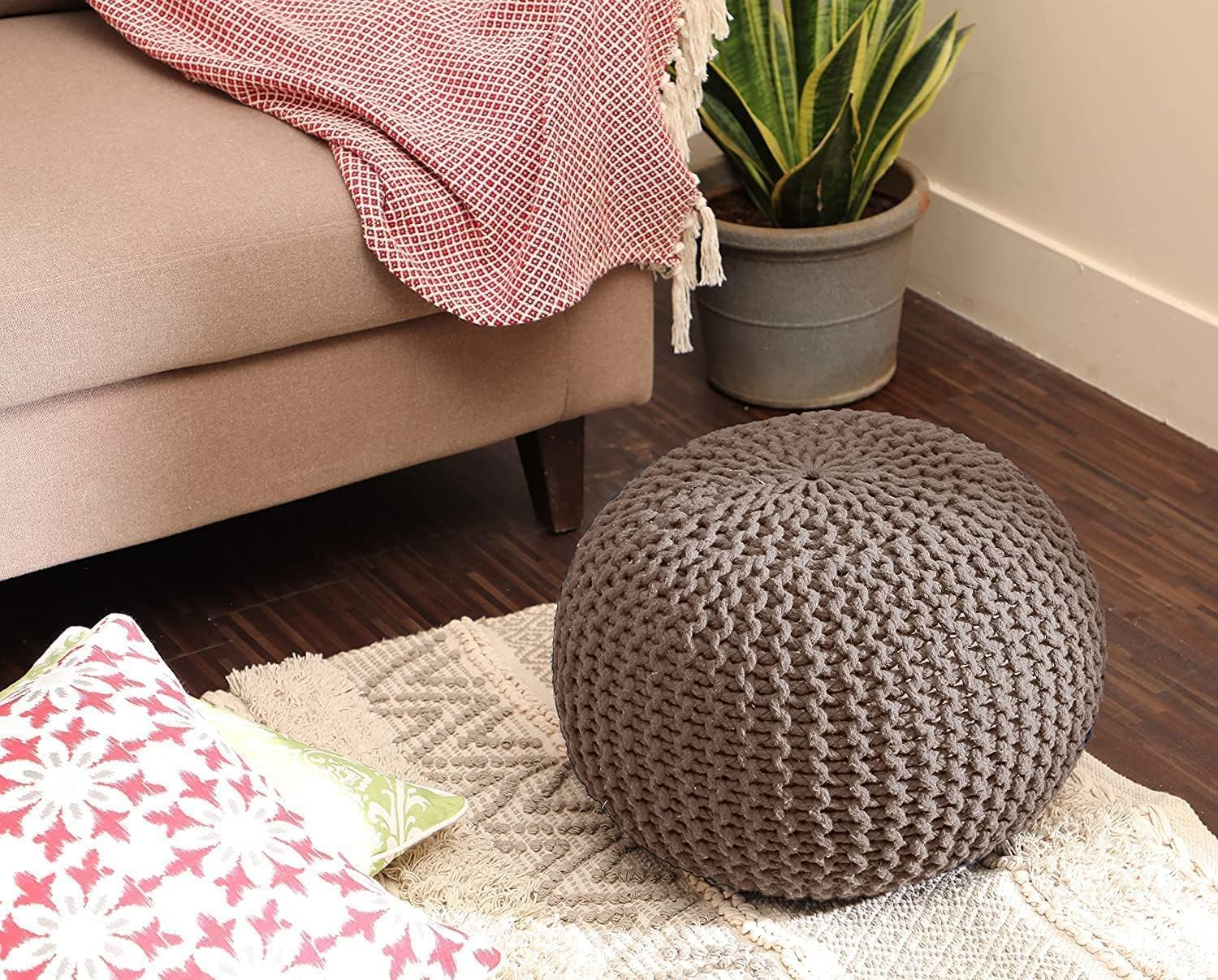 - MAKES A LOVELY, THOUGHTFUL GIFT IDEA: Our knit braided accent cord pouf ottoman is a gift that will keep on giving for many years to come. Surprise a friend or family member with one for a housewarming party, birthday, holiday, and other special occasions. Mix and match for a fun pop of color or choose one that best matches your décor and aesthetic.