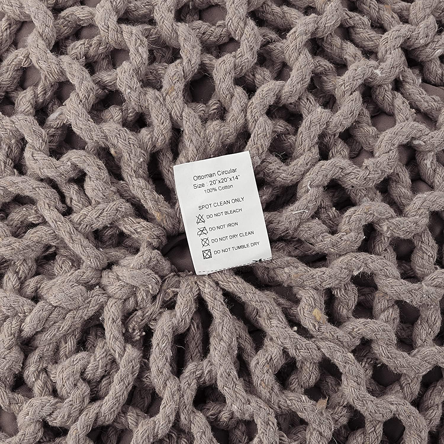 REDEARTH Round Pouf Foot Stool Bean Bag Ottoman - Hand Knitted Boho Pouffe - Home Decor Poof - Stuffed Foot Rest for Living Room - Nursery - Bedroom - Patio (19.5"x19.5"x14") - Taupe