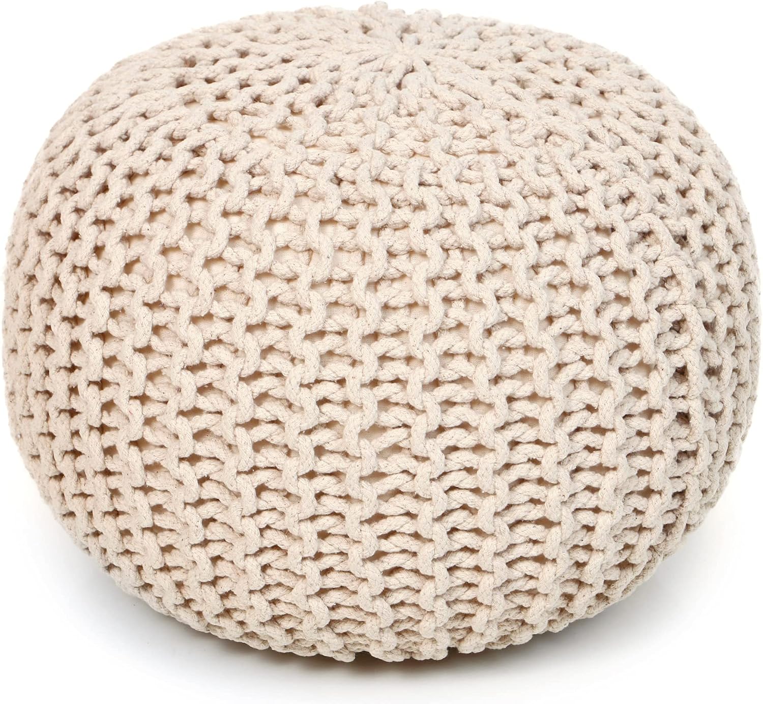 - MAKES A LOVELY, THOUGHTFUL GIFT IDEA: Our knit braided accent cord pouf ottoman is a gift that will keep on giving for many years to come. Surprise a friend or family member with one for a housewarming party, birthday, holiday, and other special occasions. Mix and match for a fun pop of color or choose one that best matches your décor and aesthetic.