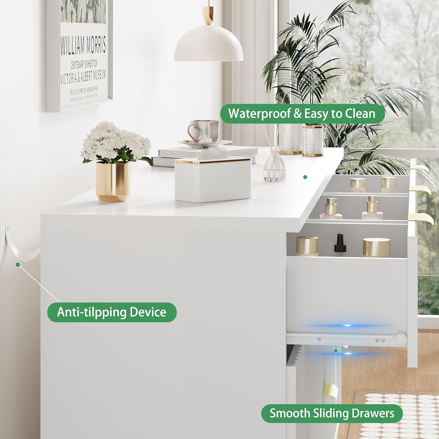 - ăStability & SafetyăThe white/black/natural oak dresser is equipped with an anti-tipping device, which can be fixed on the wall to prevent accidents. Each drawer contains a wide metal handle and built-in slide rail, easy to push and pull. Besides, the sturdy base provides this dresser with drawers a strong support and the middle feet can be adjustable to keep balance on uneven floors