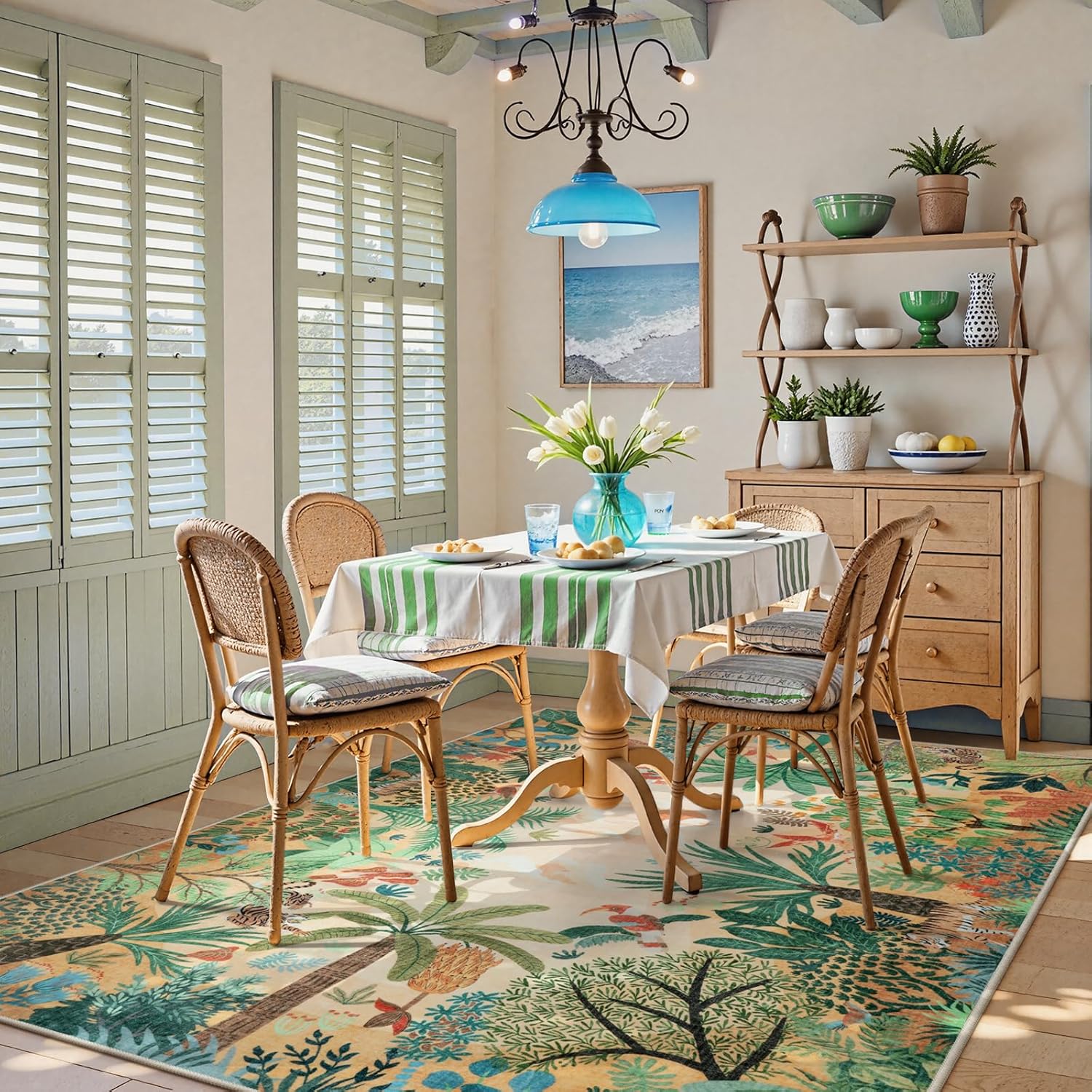 - 【Day and Night Collection】: LIVEBOX Day and Night Collection Rug captures the sky's transformation from dawn to midnight. With vibrant hues of four color, this rug brings the jungle's enchanting beauty and the sky's magical shifts into your space.