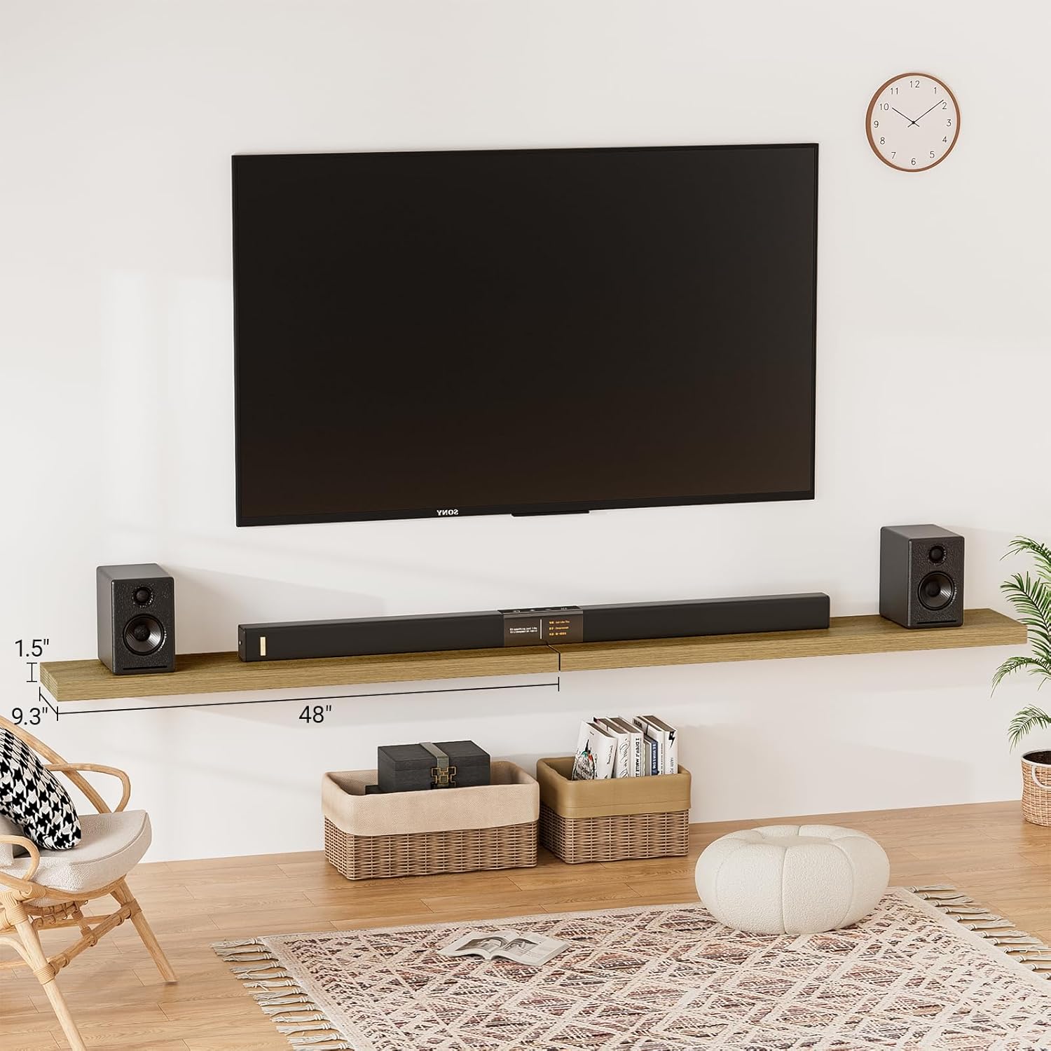 - ăModern Rustic LookăOur 48 floating shelves for wall are made from durable engineered wood,which blends well with modern and rustic farmhouse wall decor alike.The 48 inch floating shelves is available in colors & sizes,perfect for storing books,plants,collectibles,etc..