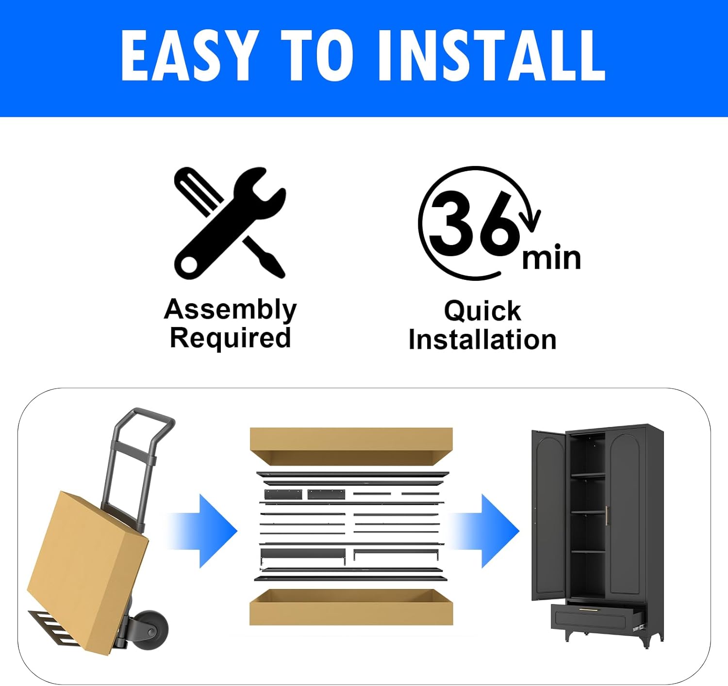 - Versatile Functional: The appearance of the metal pantry cabinet makes it suitable for any place while providing easy storage for a variety of items. Whether it's storing food and utensils in the kitchen, clothes and cleaning supplies in the laundry room, or even books and gadgets in the living room - you have numerous usage scenarios to choose from