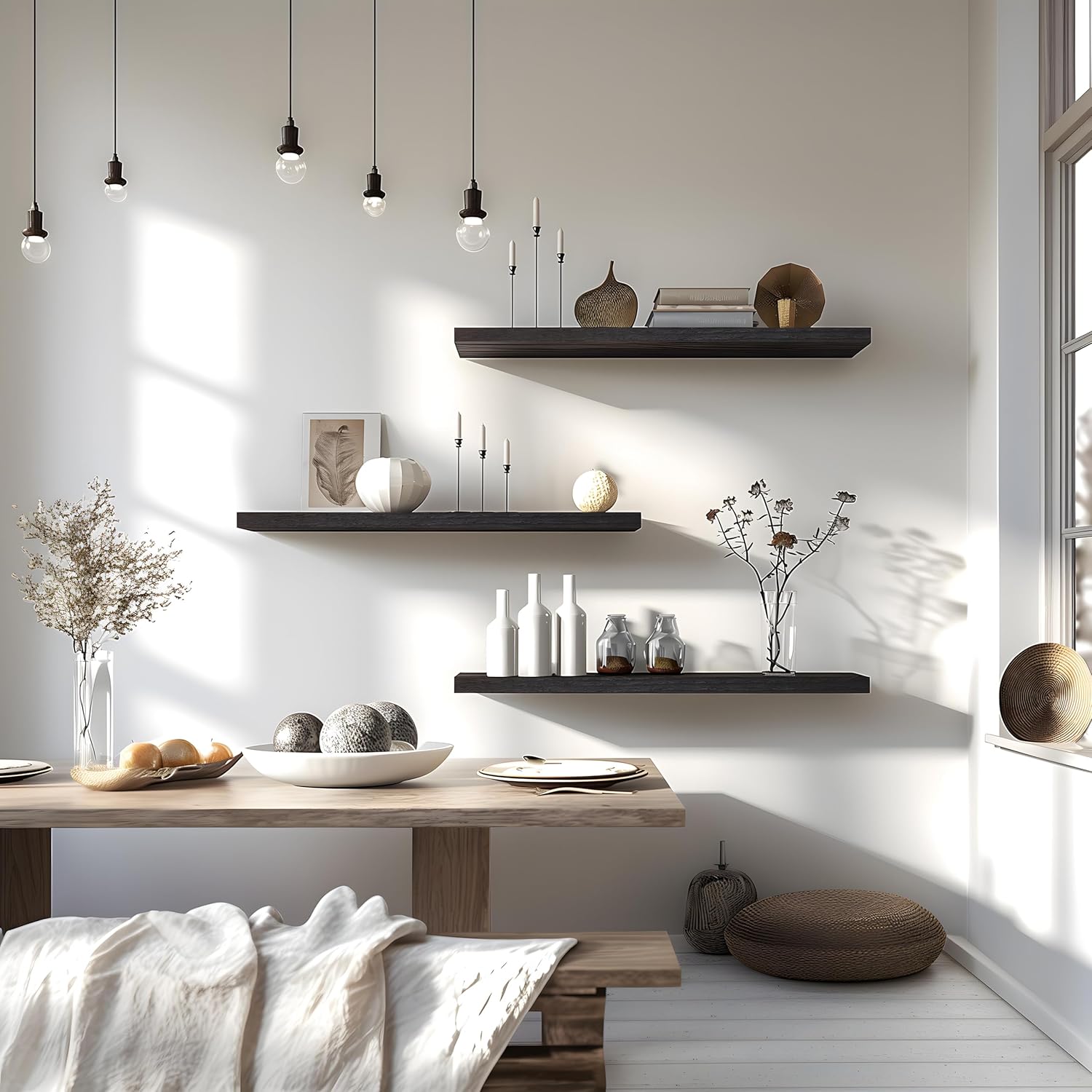 - EASY TO INSTALL FLOATING SHELVES - Includes spot-on instructions with necessary mounting hardware, use hidden metal brackets for installation, steel wall brackets ensure firm fixation, shows no visible support, making it appear to be floating.